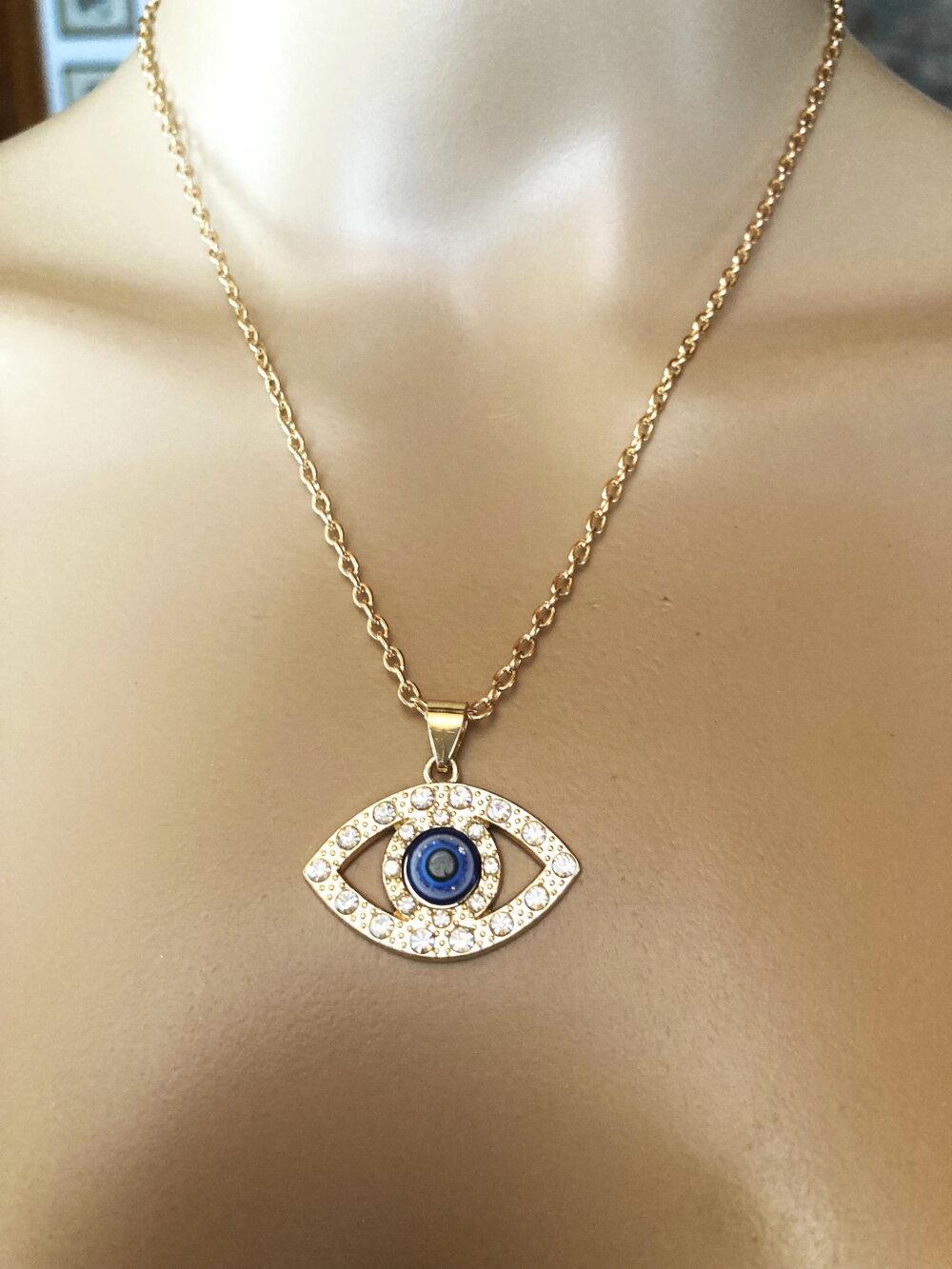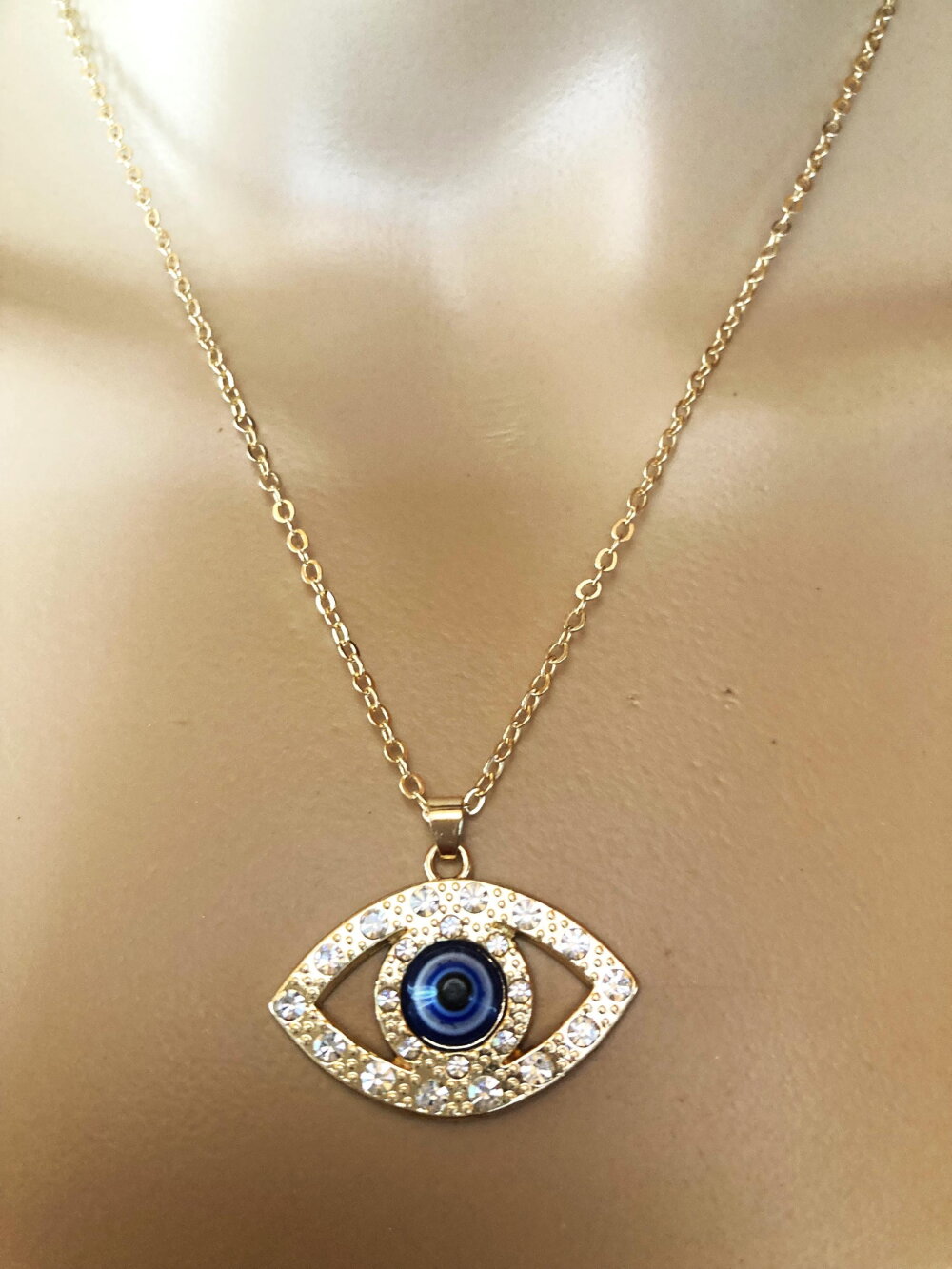 Pendentif porte bonheur grec protection tendance collier chaîne 45/50 cm bijou homme femme