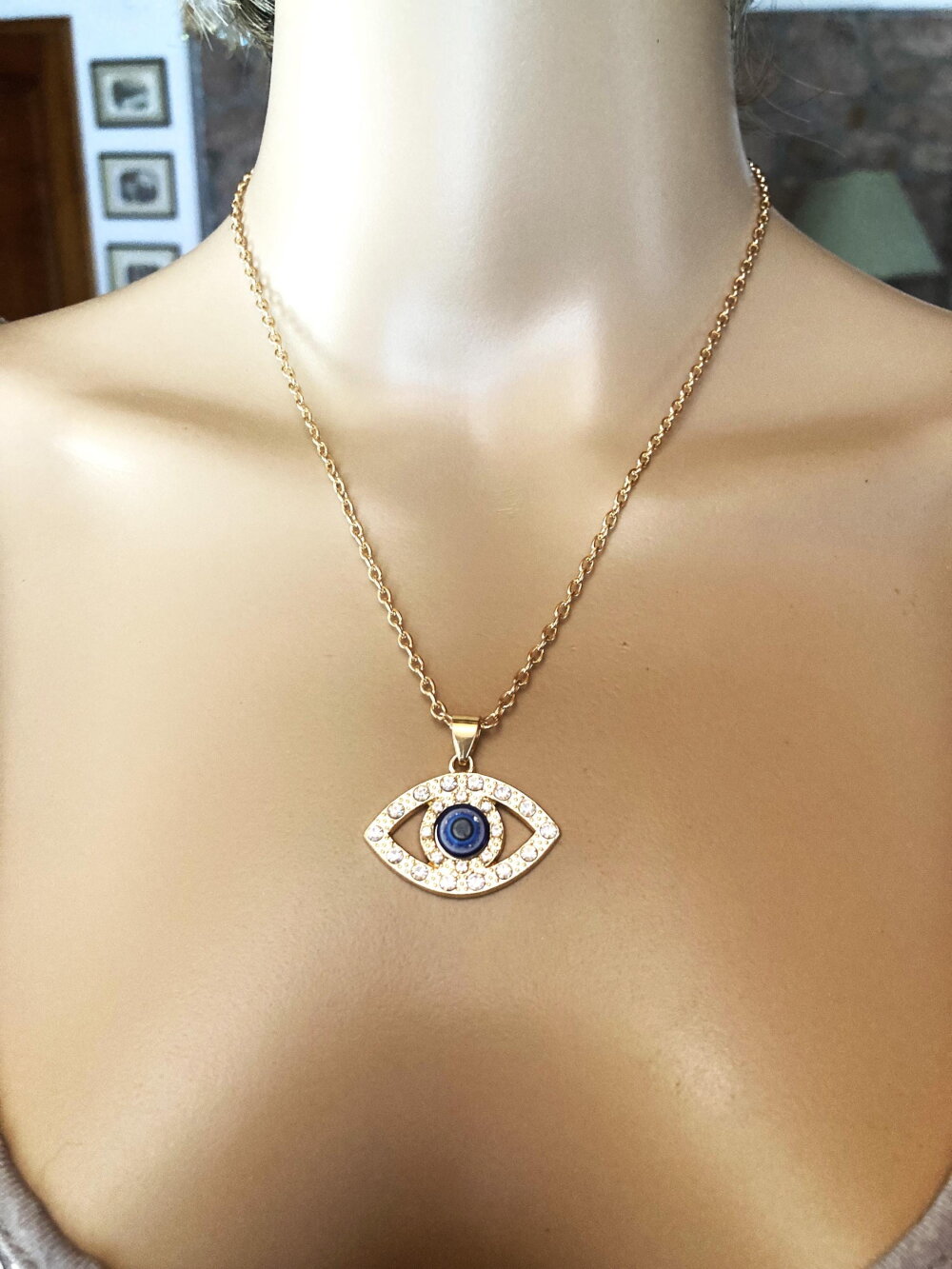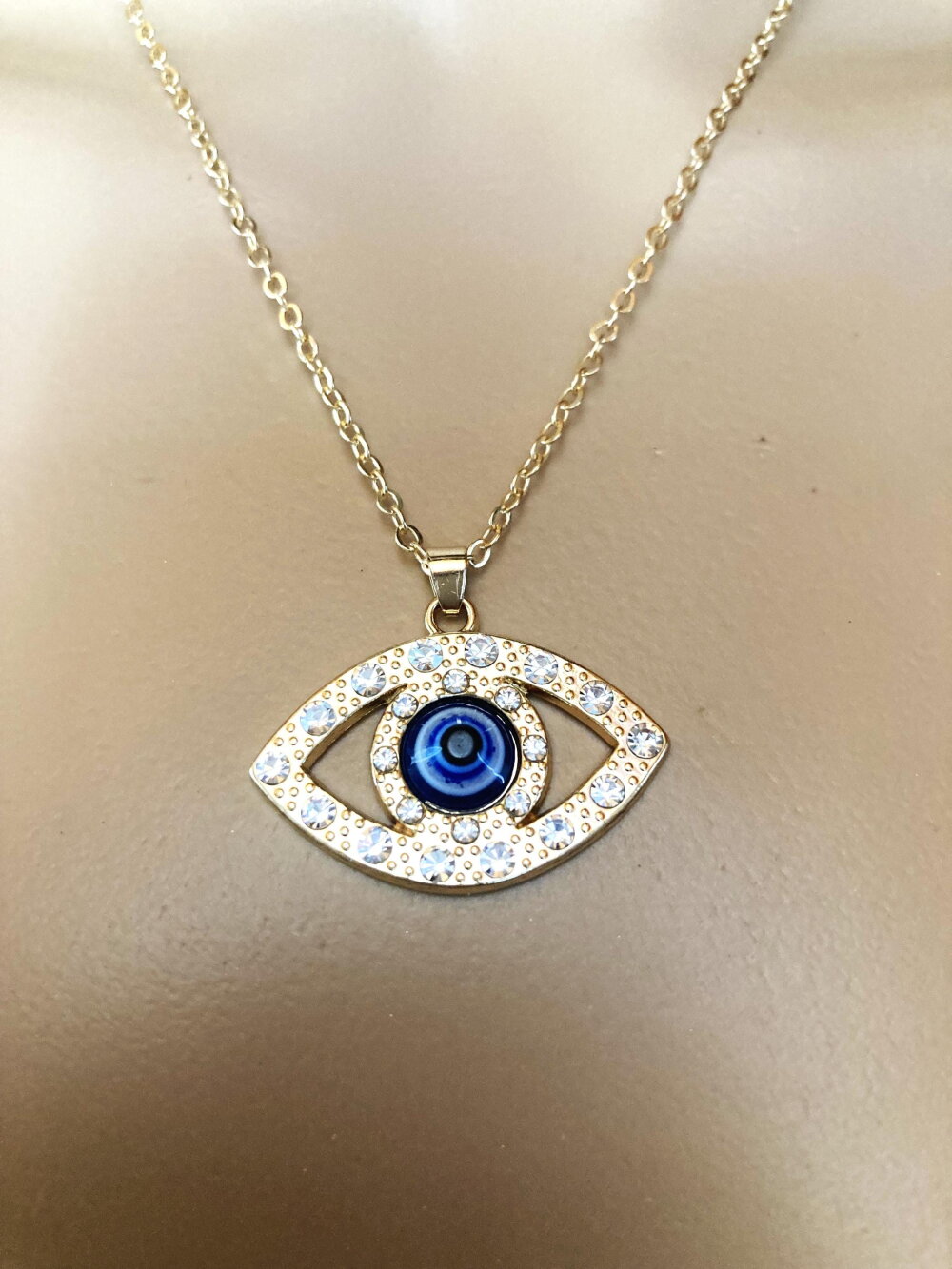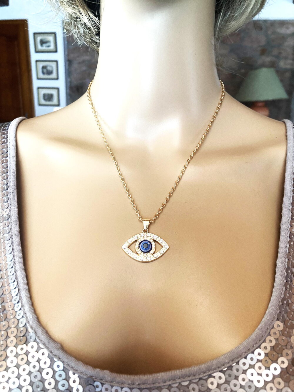 Très joli pendentif avec brillants, porte bonheur, grec, tendance. Bijou homme femme.