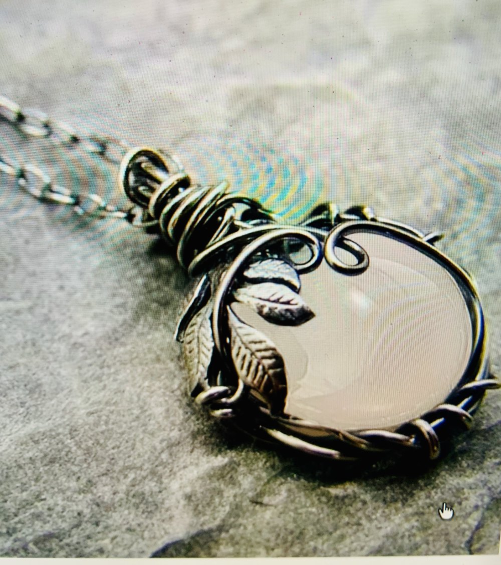 collier en pierre naturelle et métal argenté  sur une chaine assortie