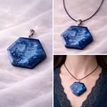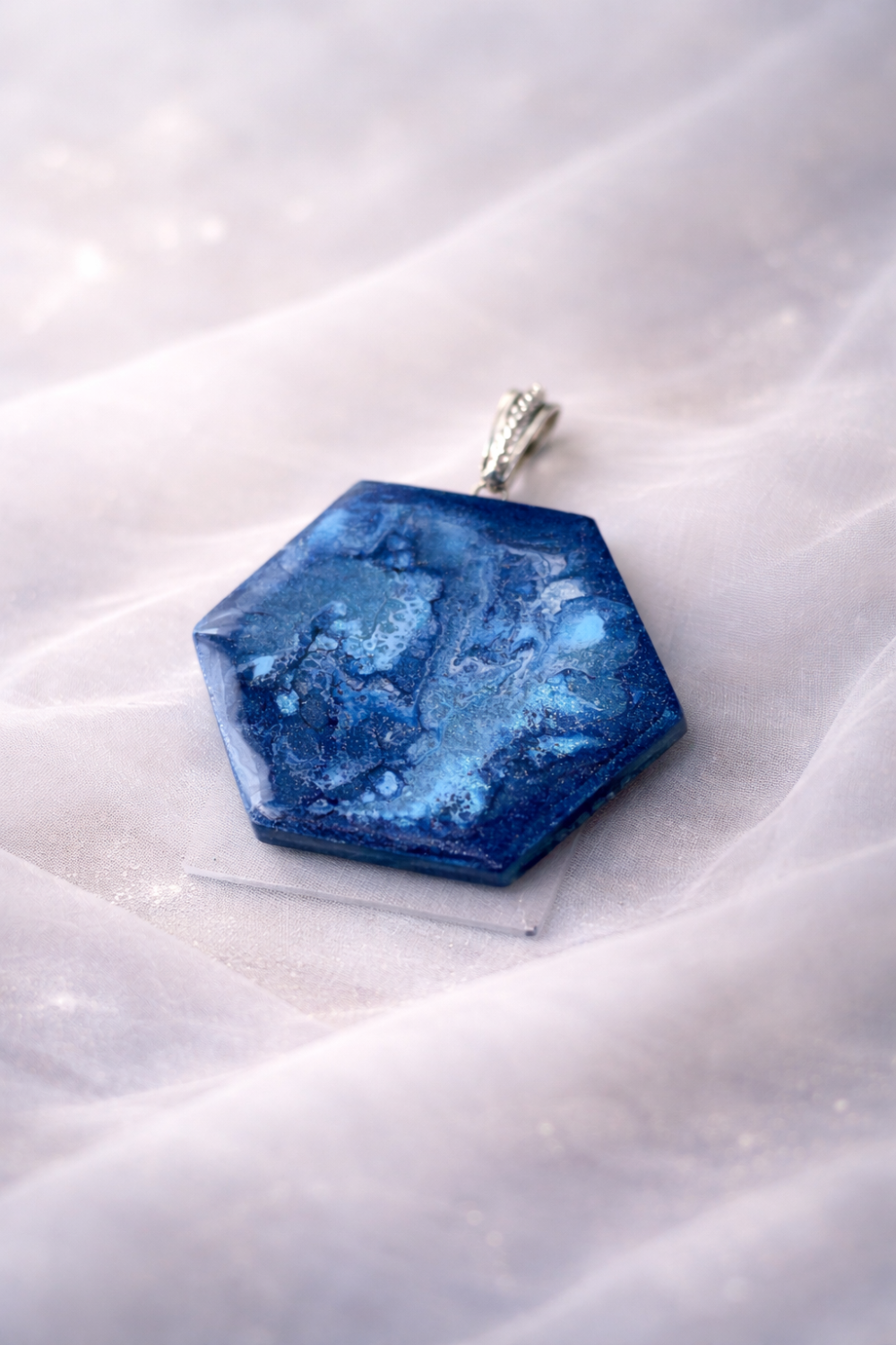 Création pendentif unique bleu océanique sur bois résiner de 45 mm ,création unique fait ma