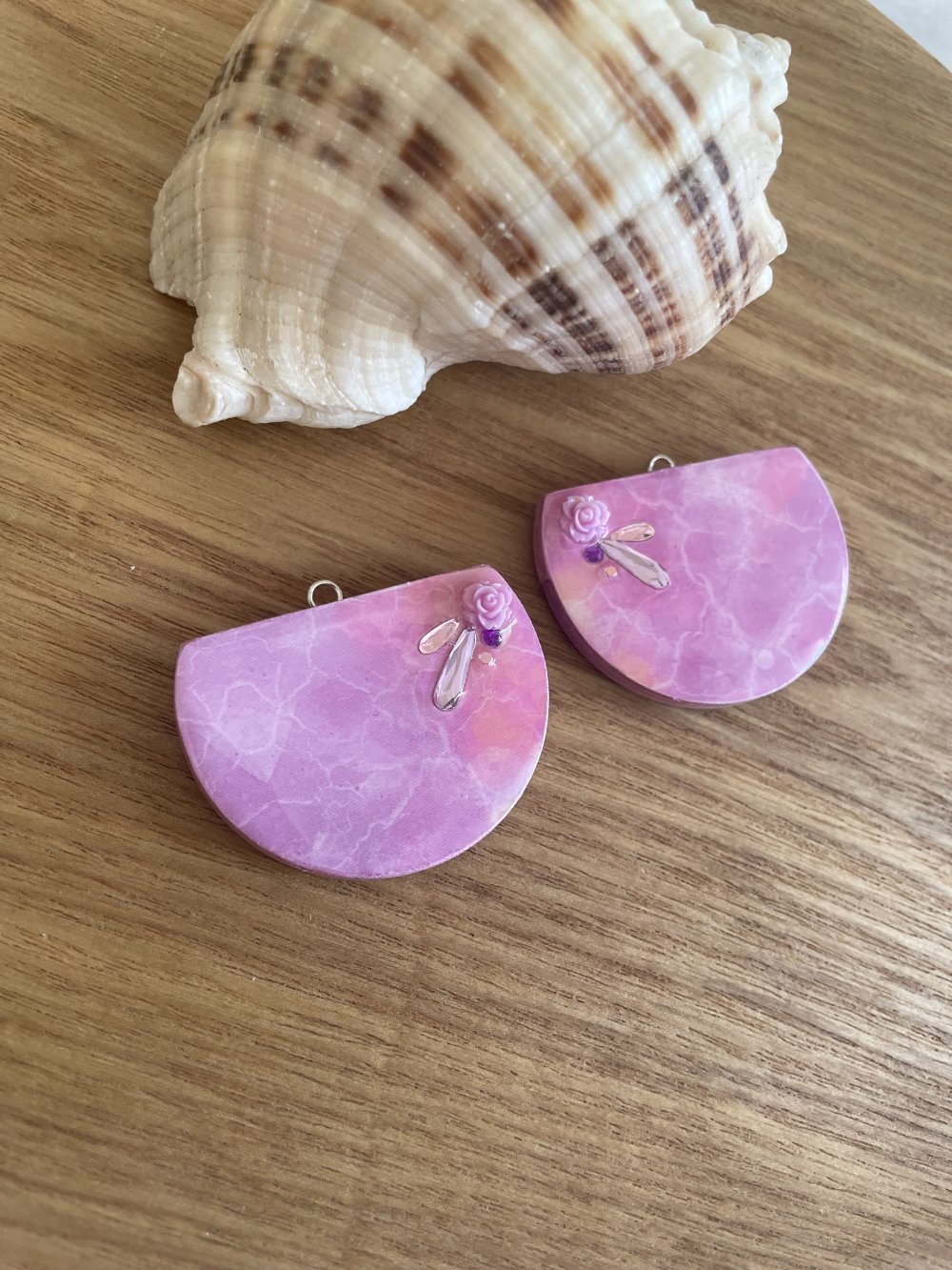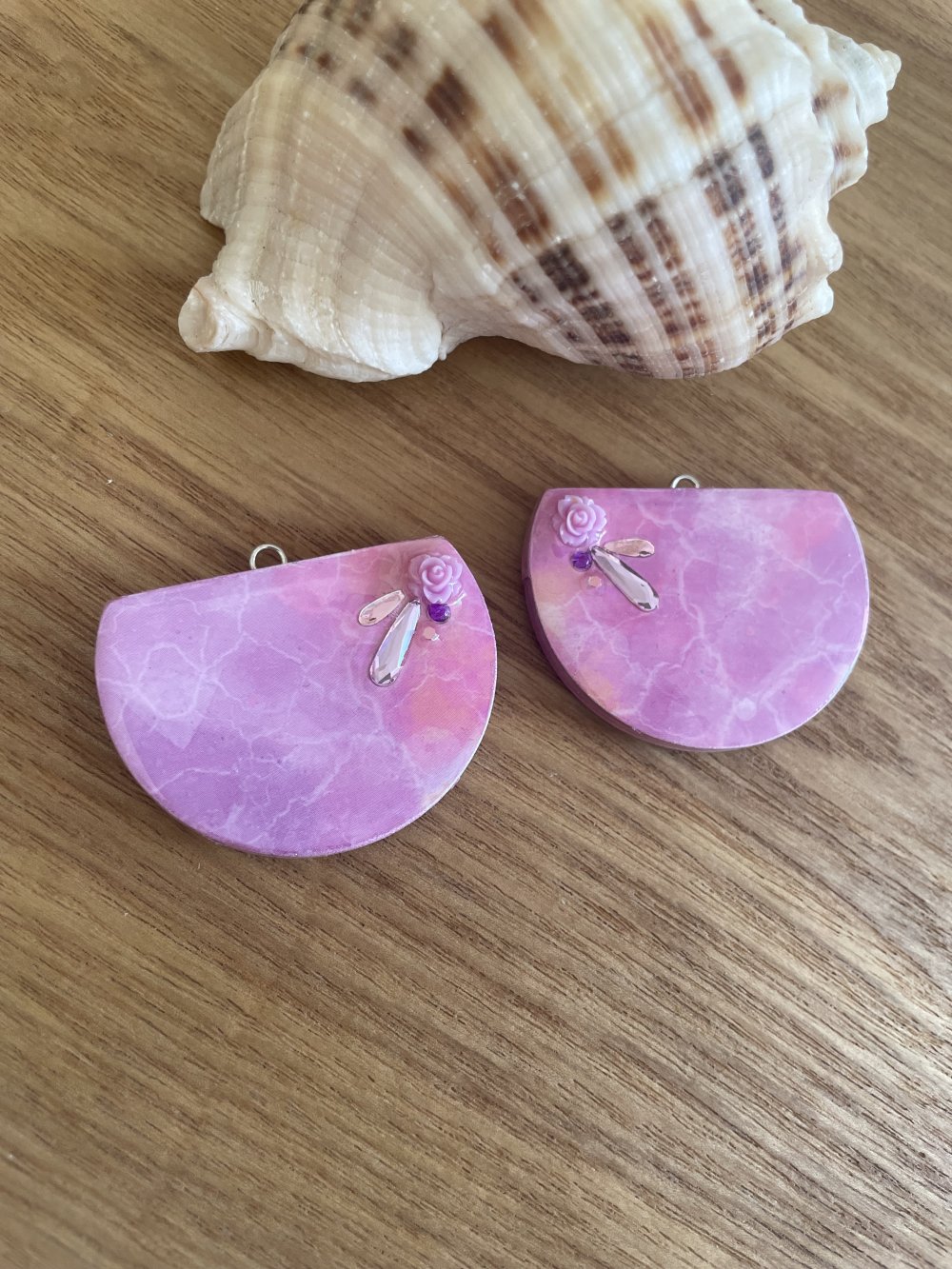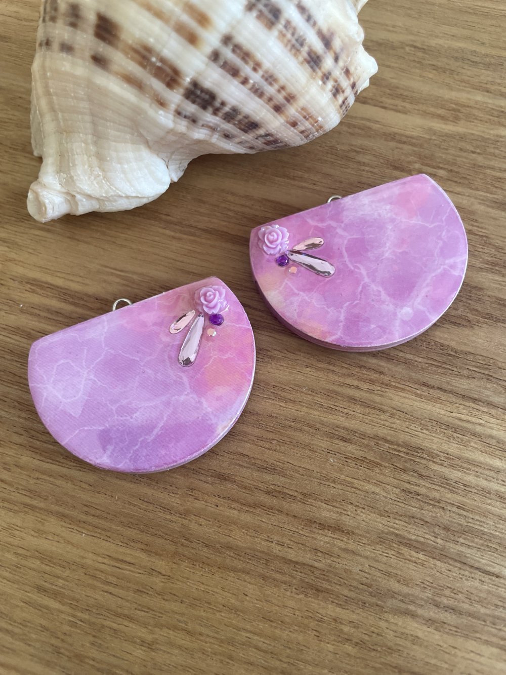 Pendentifs en bois résiner camaïeu rose avec strass cristal 40x30 mm