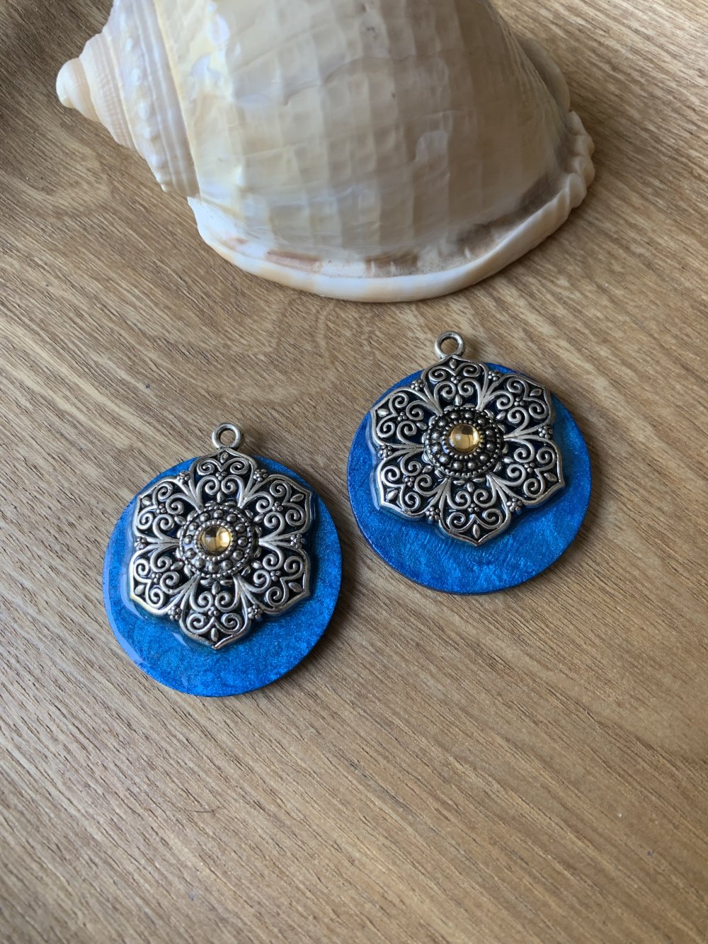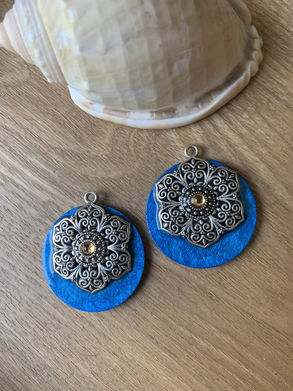 Duo de pendentifs pour création bijoux,supports bois de 38 mm