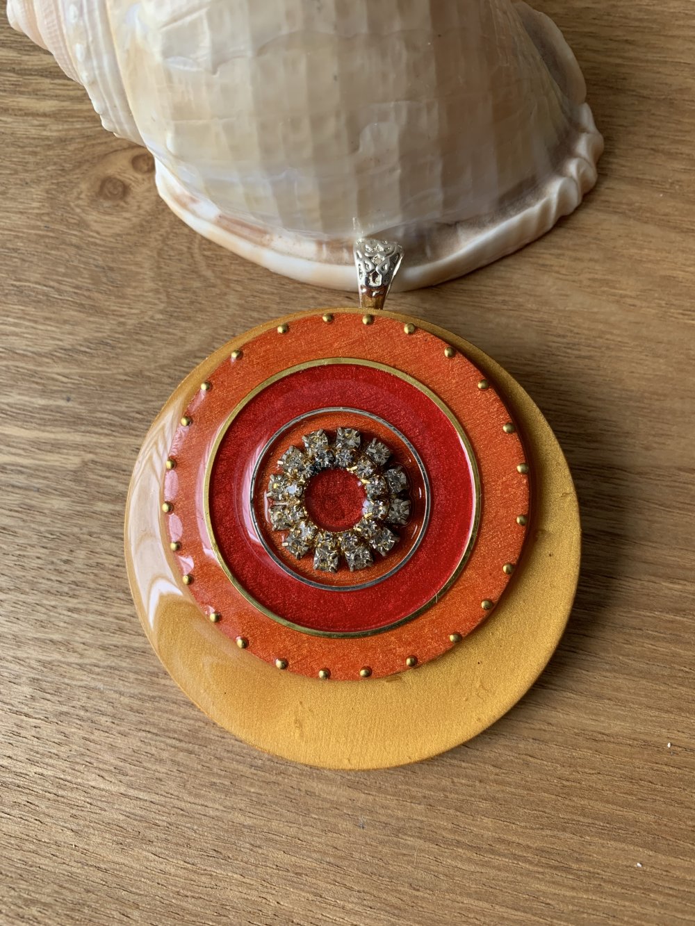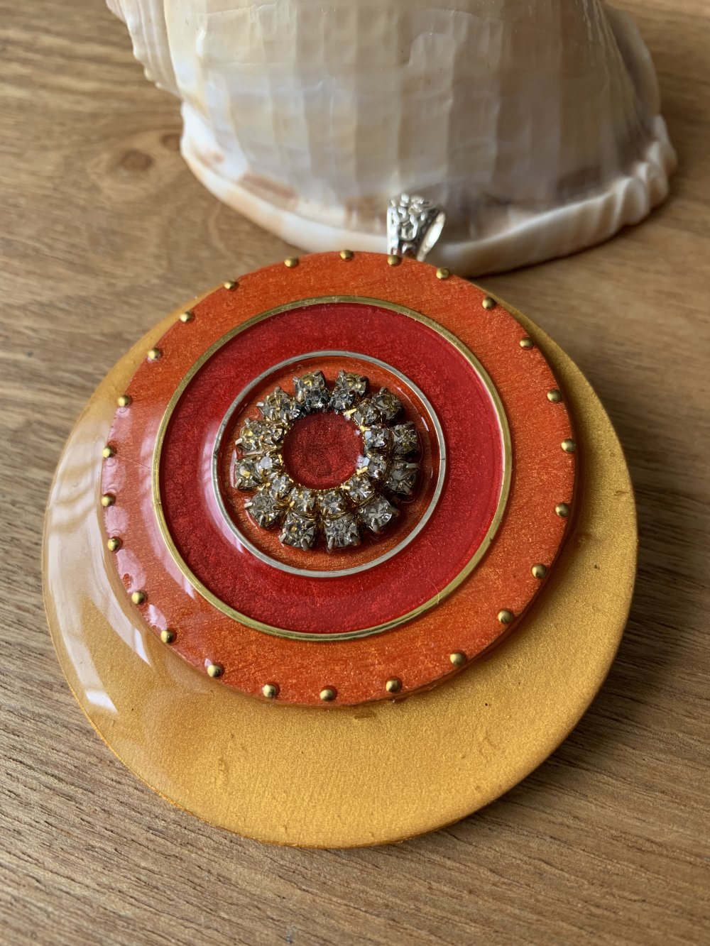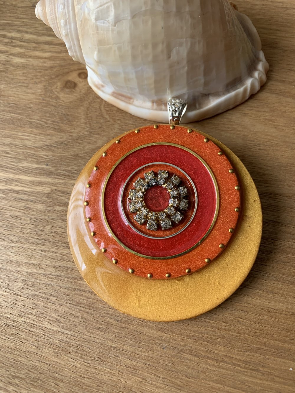 Gros pendentif en métal strass et bois résine 65 mm