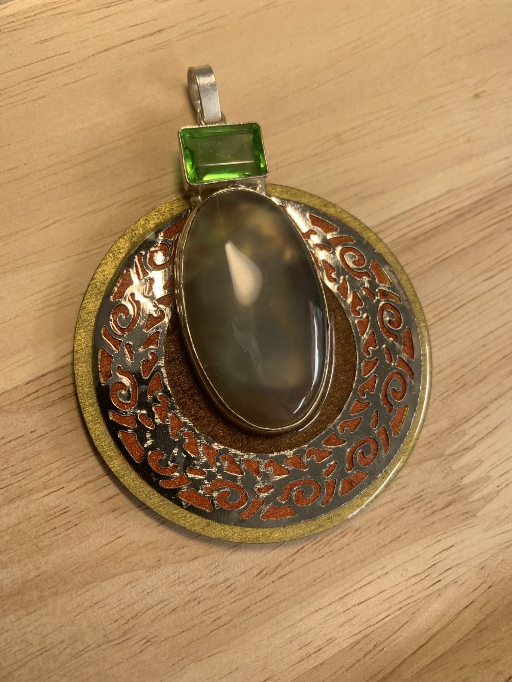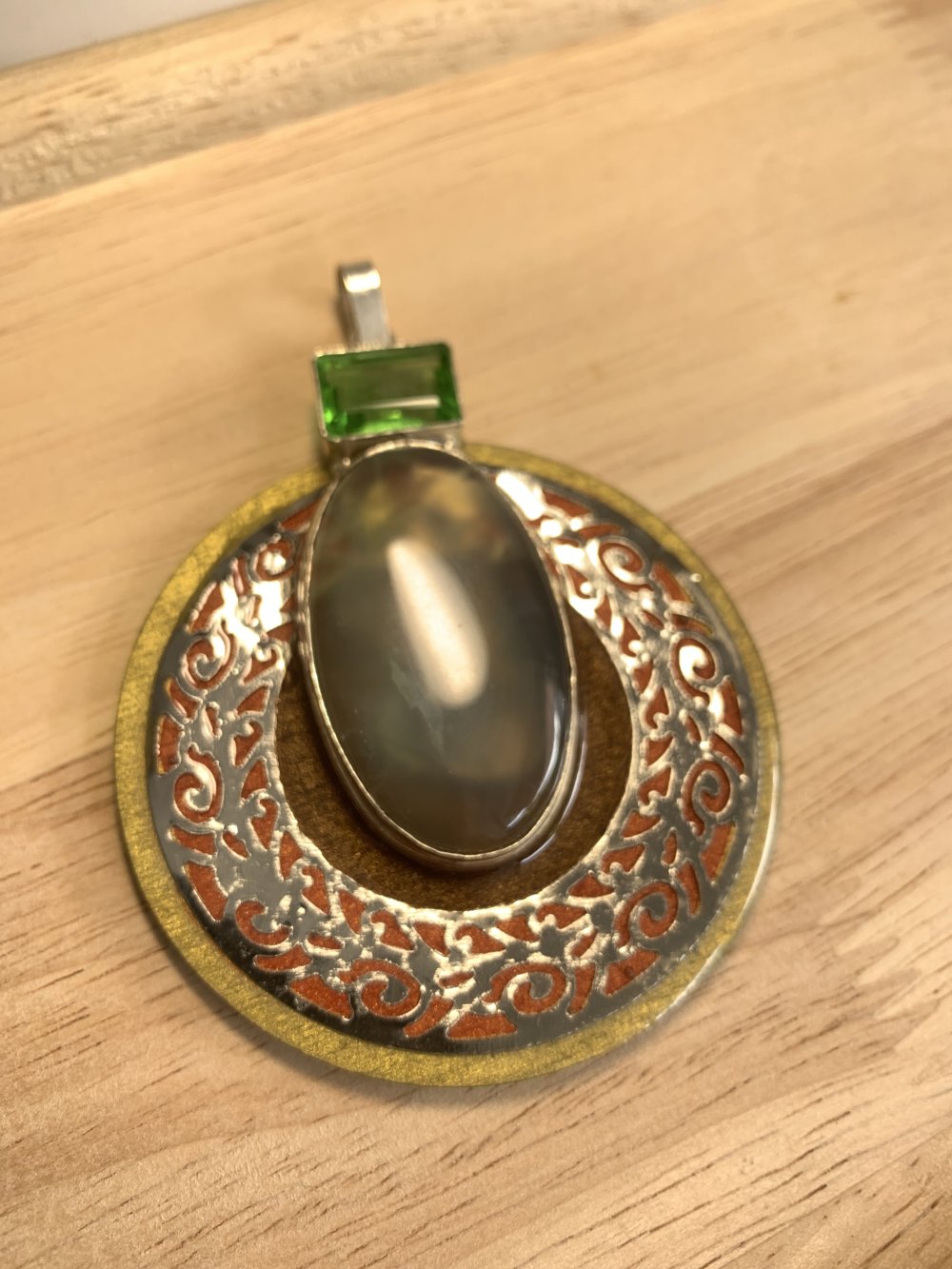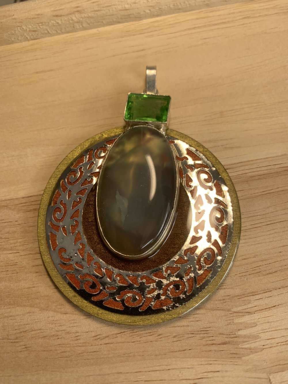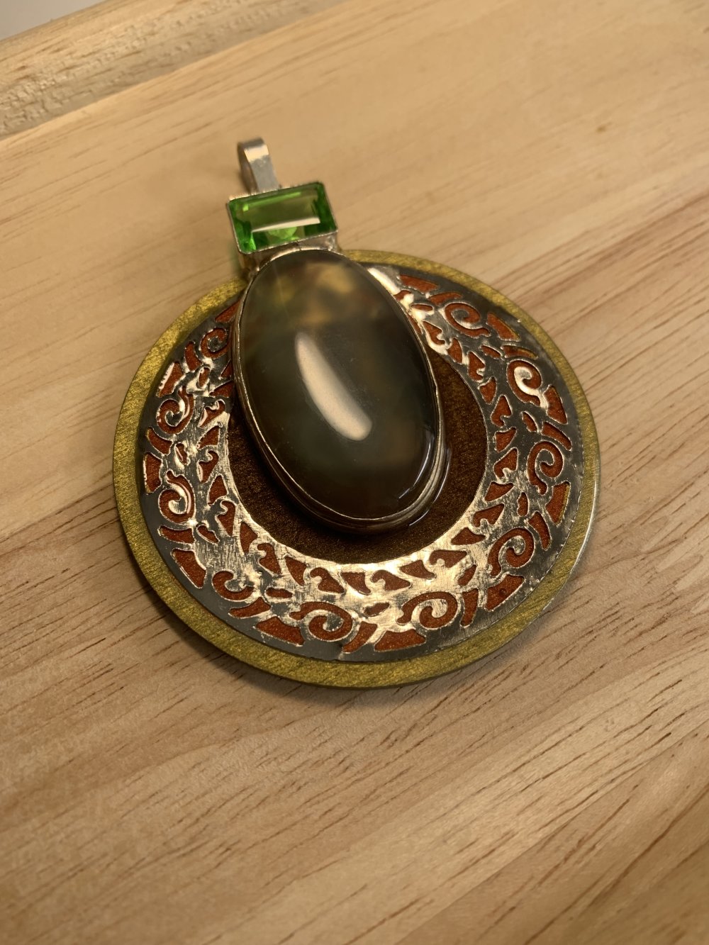 Pour créations bijoux,gros pendentif 65 mm,en bois peint ,décoré et résiner