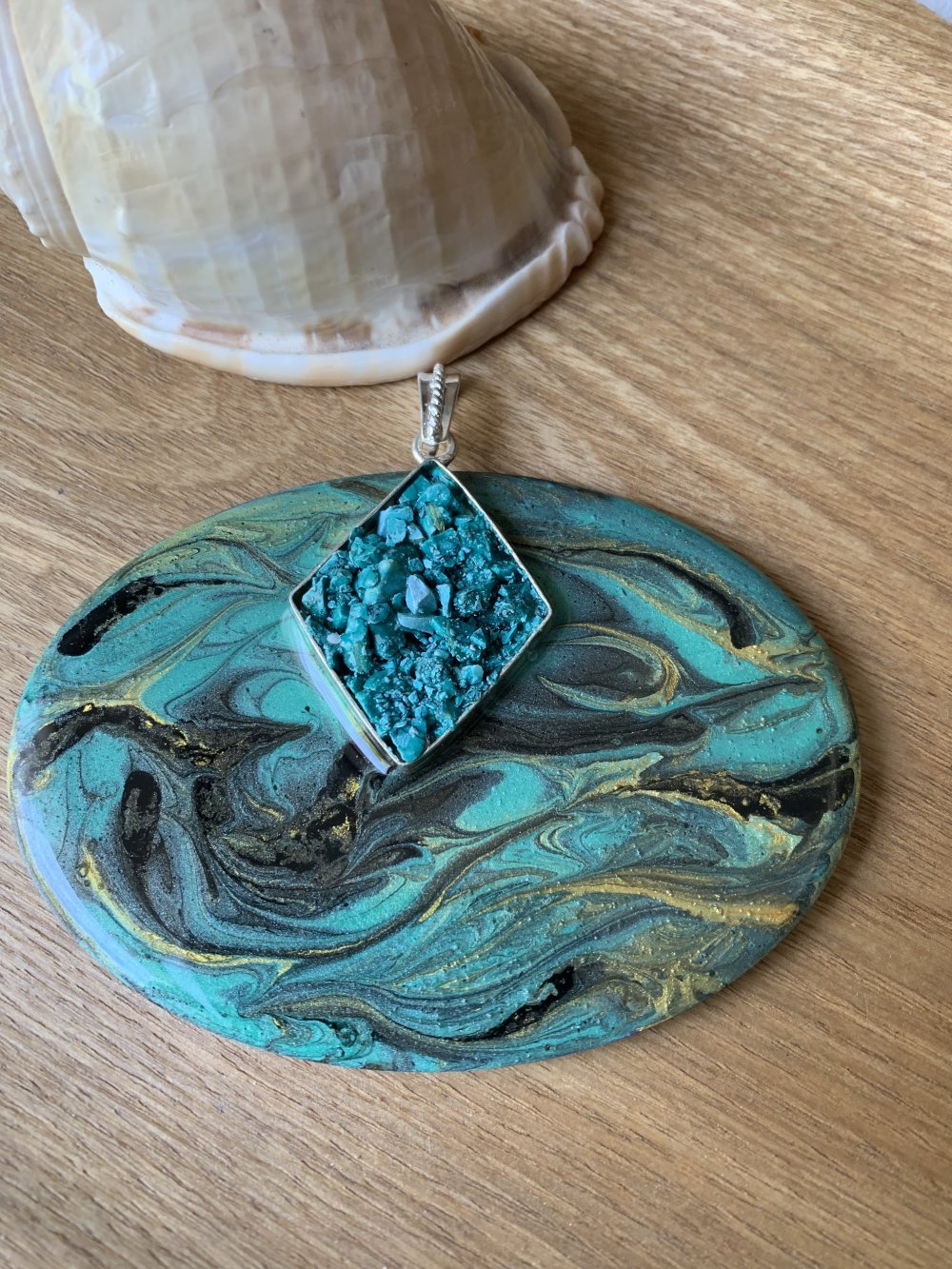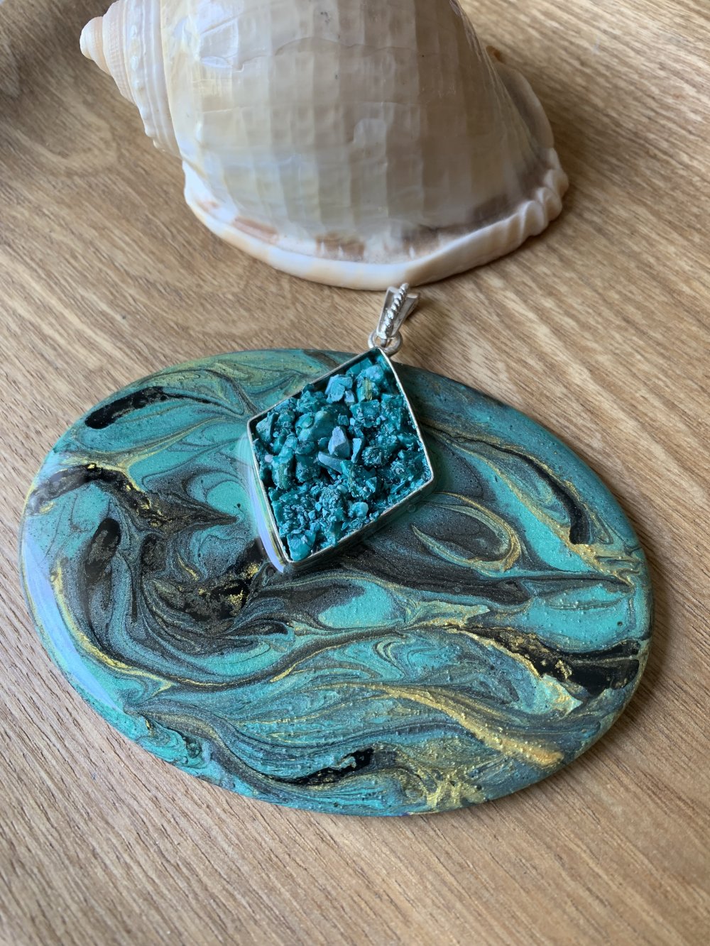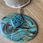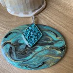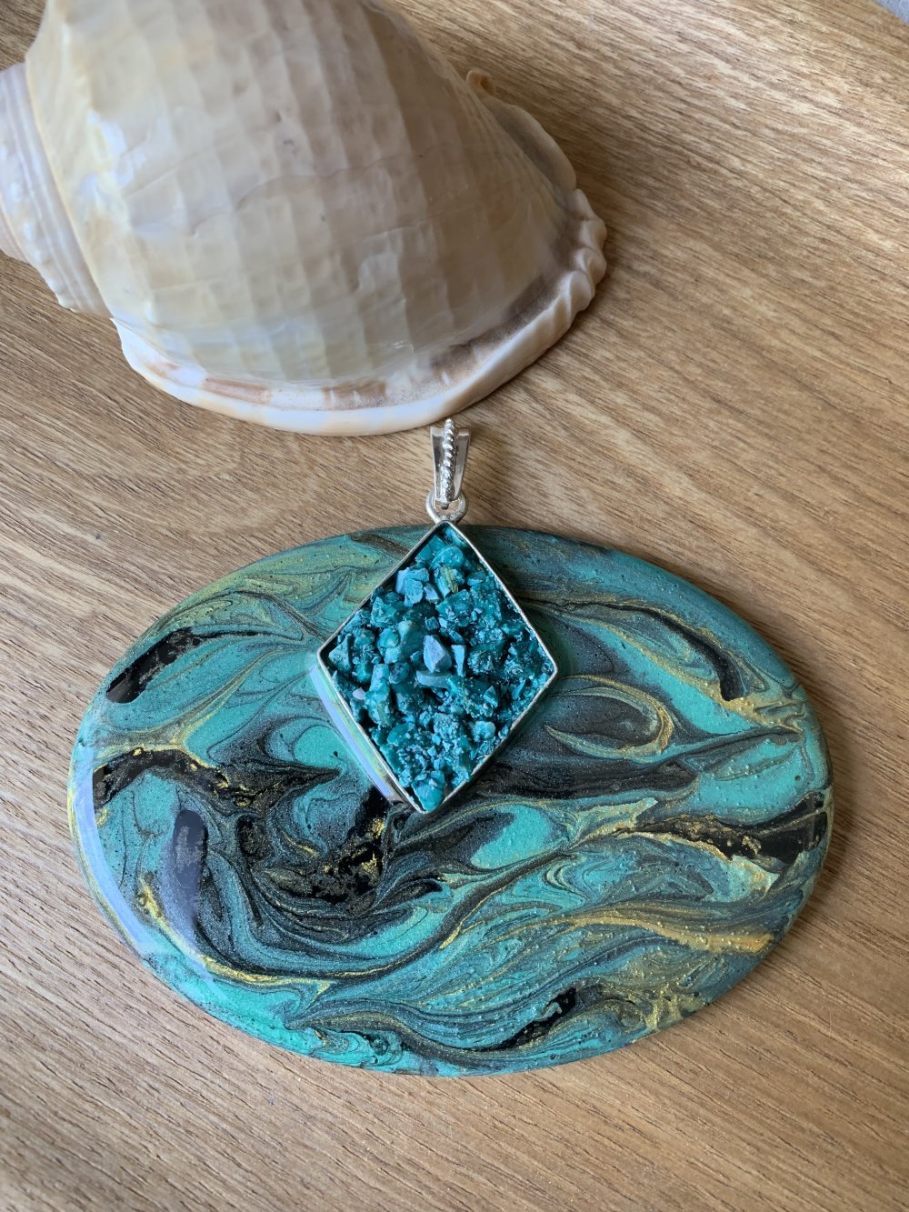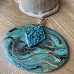 Très gros pendentif unique,support bous de 10x7 cm ,ponce,peint,décoré et résiner en couches épaisses pour un effet optimal des coloris au fini brillant, (vous,howlite,résine)