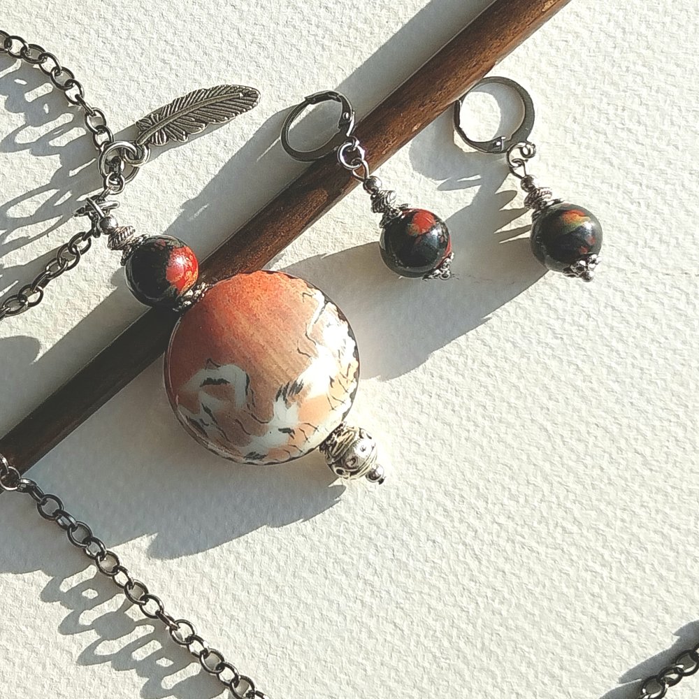 Ambiance orientale par un ciel orangé... avec ce pendentif japonisant, accompagné de boucles d'oreilles assorties