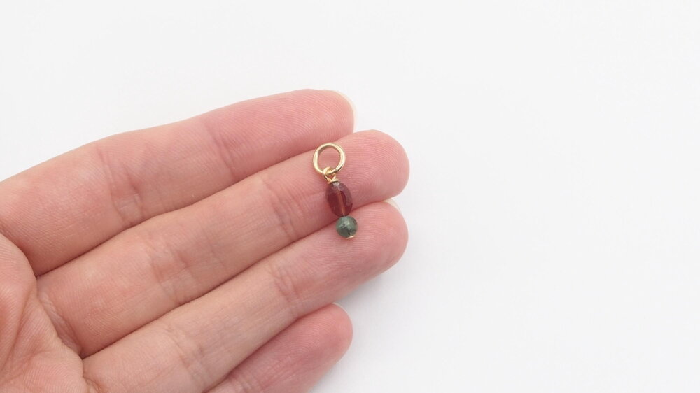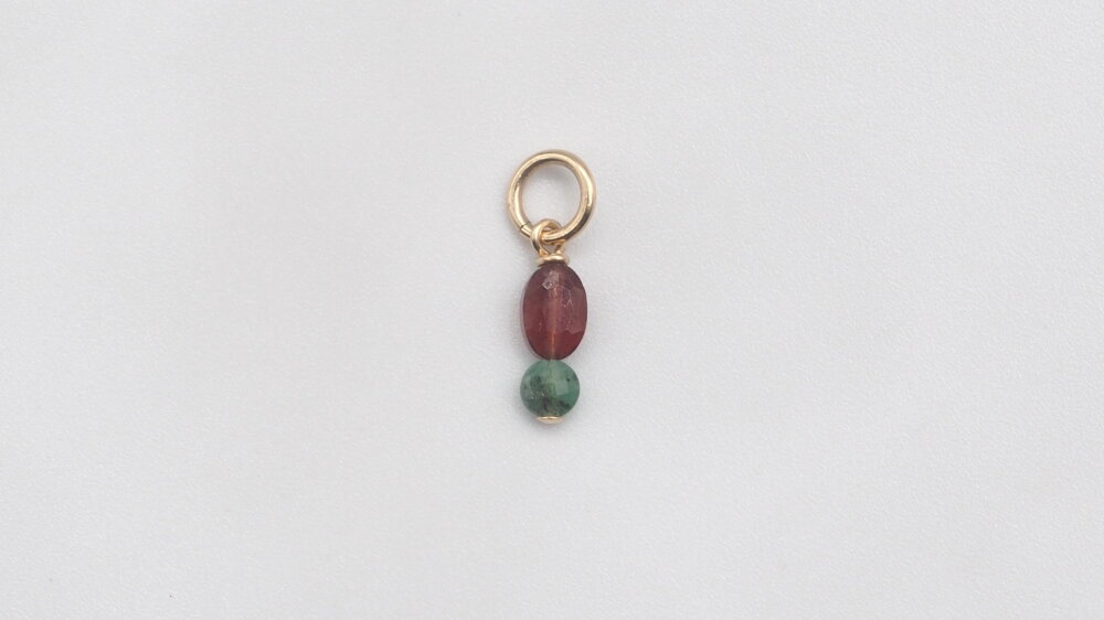 Pendentif Ada grenat almandin avec émeraude or 14 carats (gold filled)