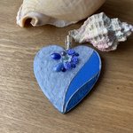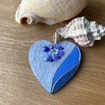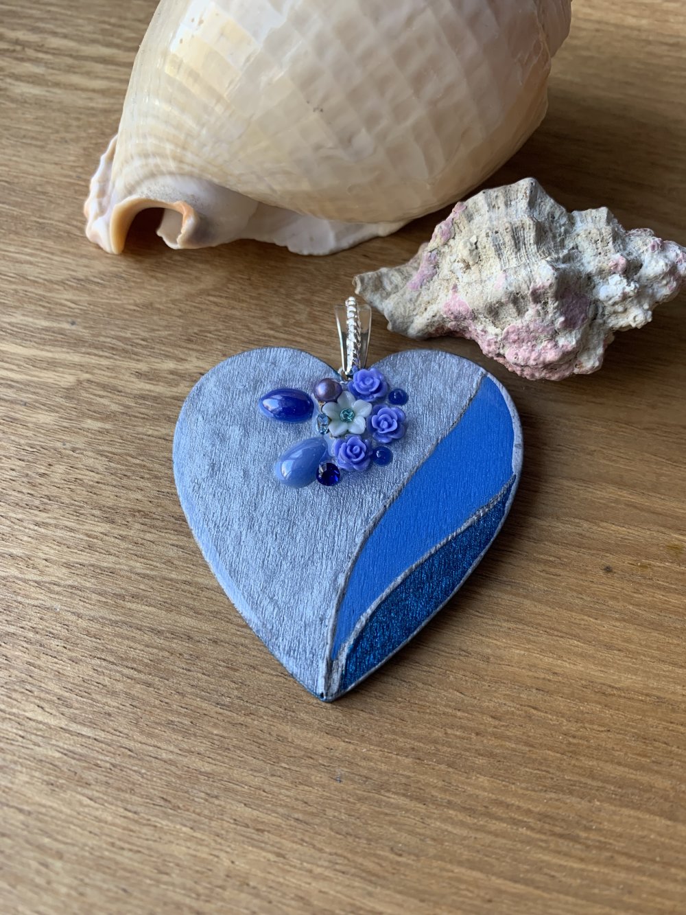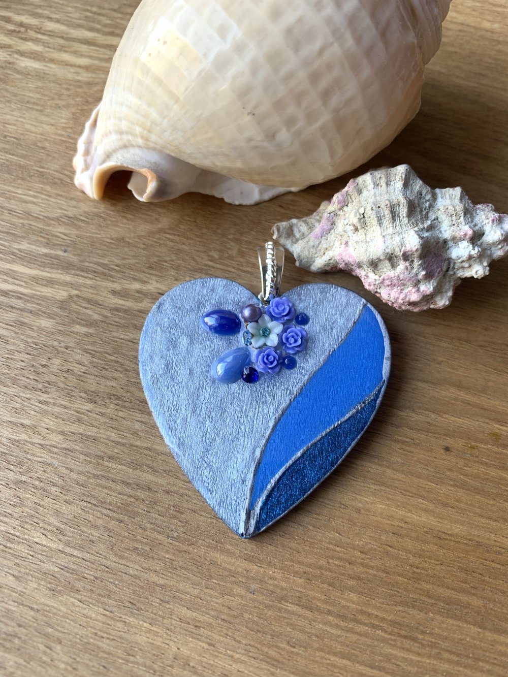 Pendentif cœur en bois résine fait main,support bois de 50 mm,peint ,décoré (résine,céramique,cristal) résiner en couche epai