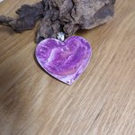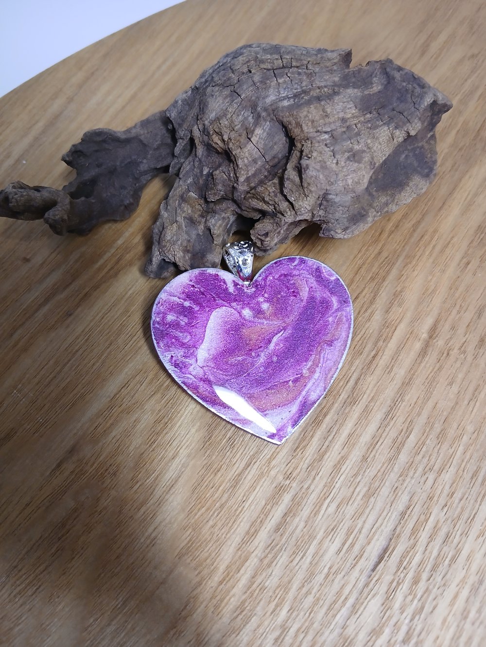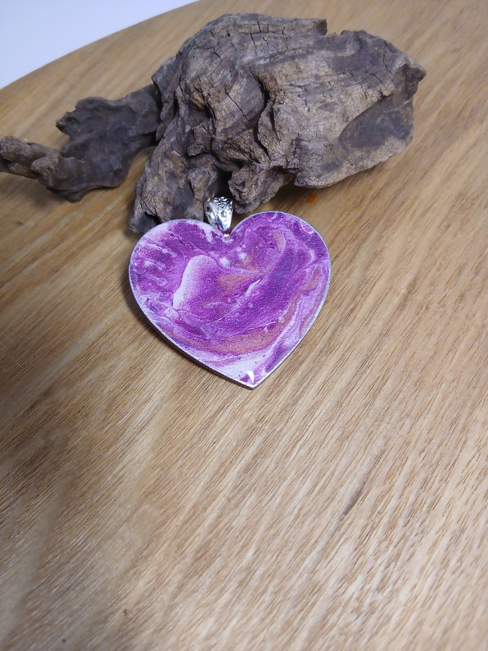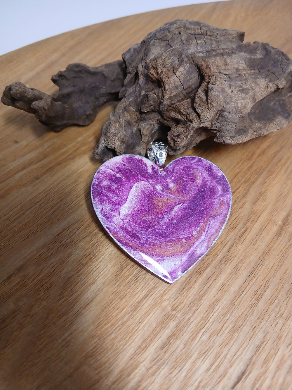 Pendentif cœur camaïeu rose prune en bois resiner fait main 50 mm