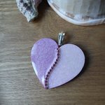 Pendentif cœur douceur rose fait main pour créations bijoux,support bois de 50 mm,poncé peint,décoré de strass cristal et resiner en couches épaisses pour un effet optimal au fini brillant