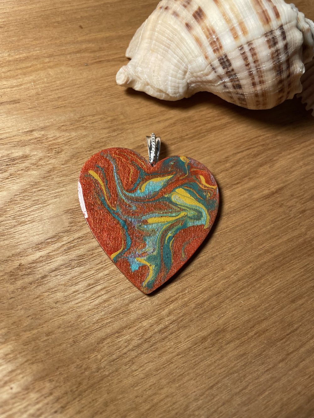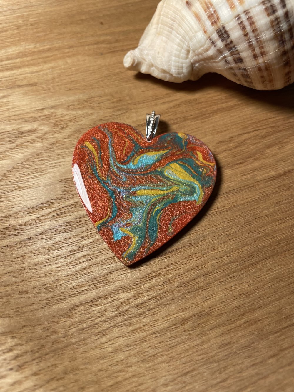 Création pendentif cœur en bois résiner fait main de 50 mm