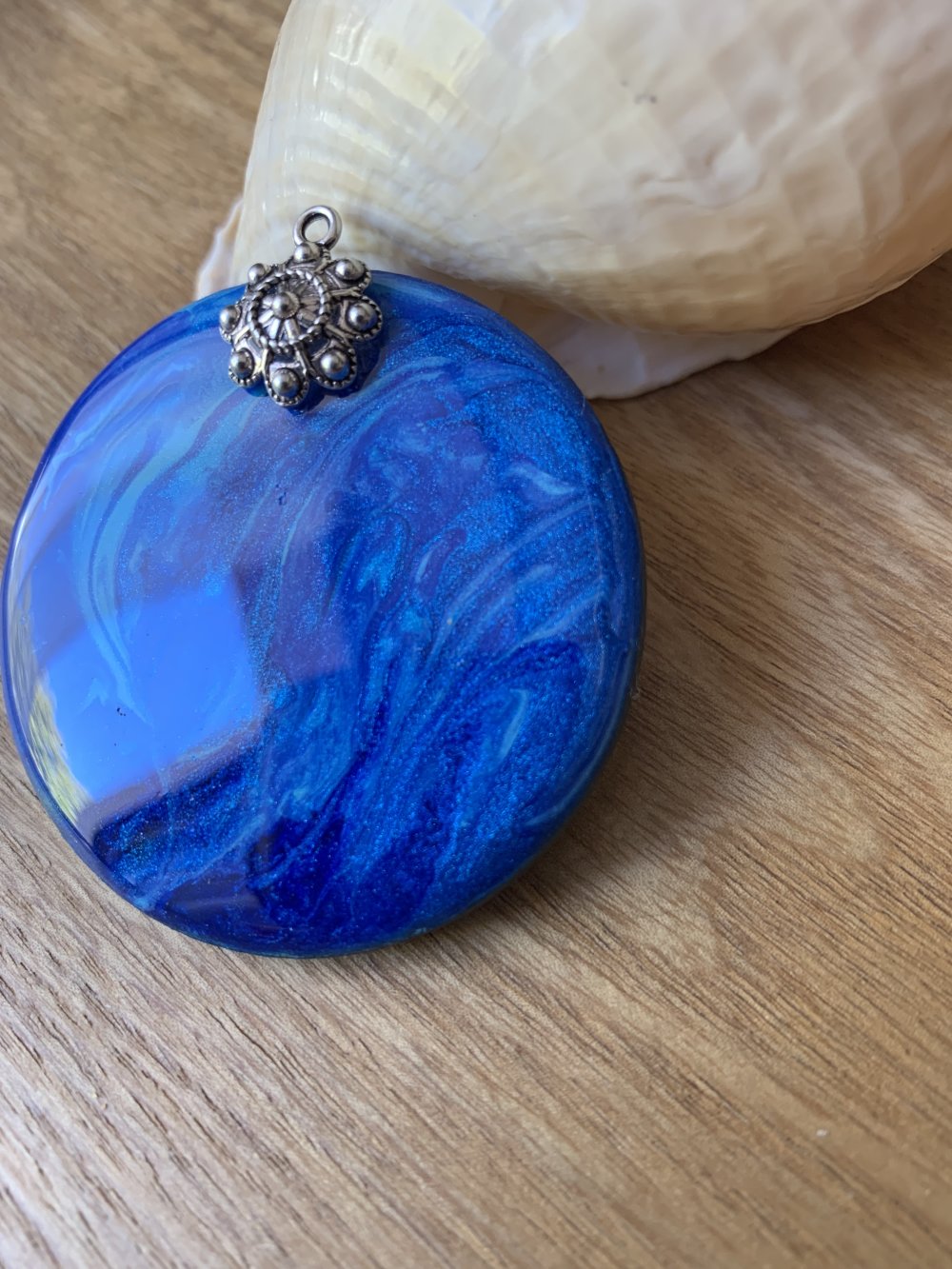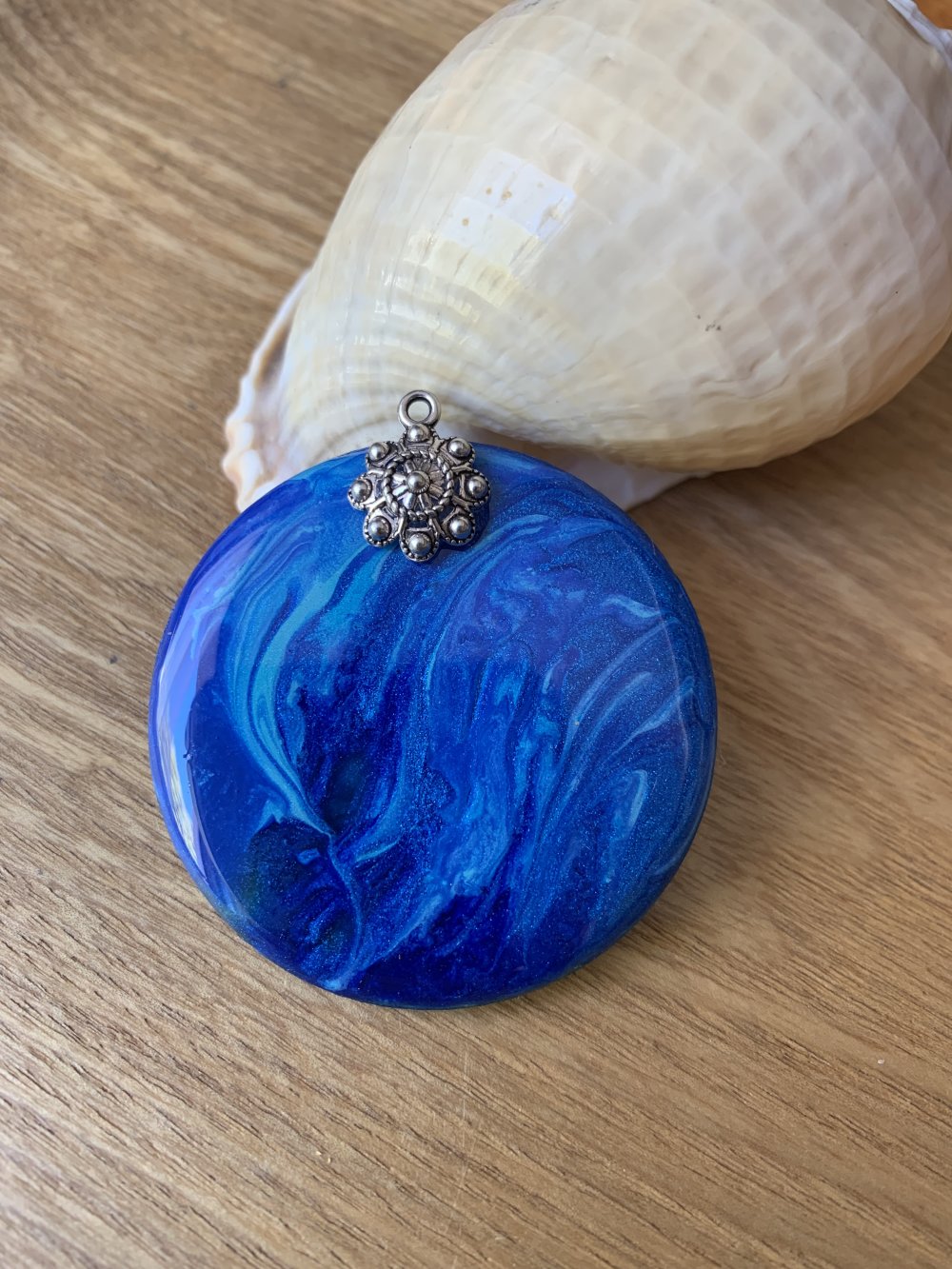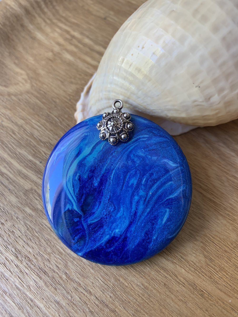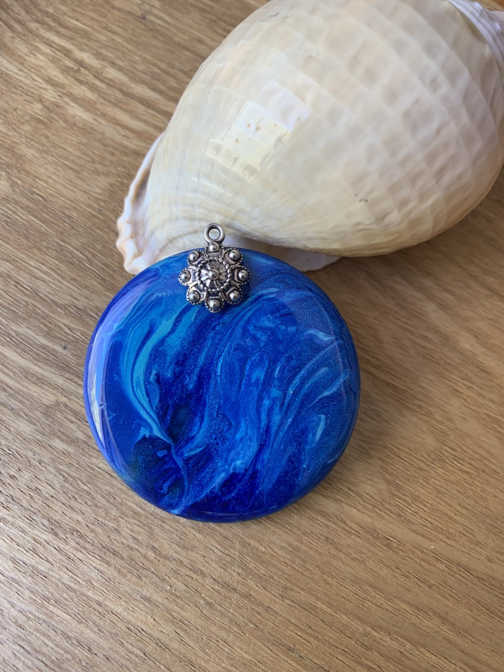 Pendentif camaïeu bleu pour vos créations bijoux,support de 50 mm,fait m