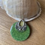 Pendentif camaïeu vert en bois résine strass 40 mm