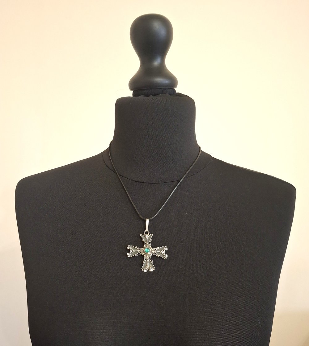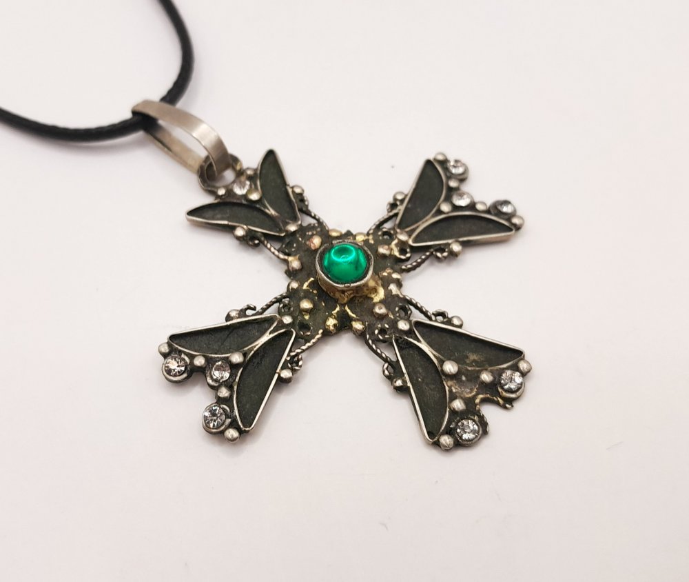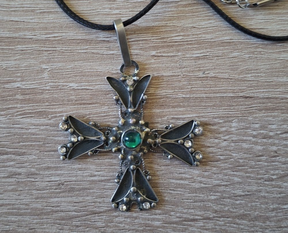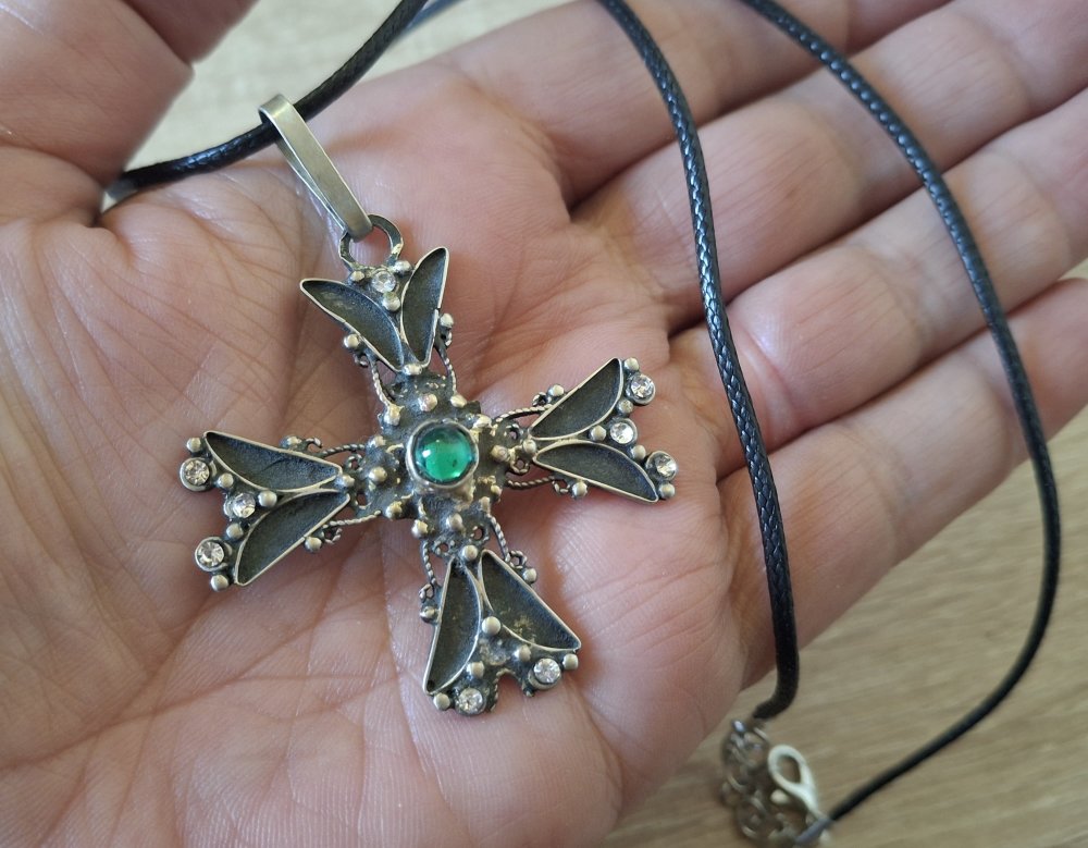 Un symbole éternel de foi et d’héritage, ce pendentif croix arménienne fait main incarne la beauté sacrée et la force intérieure. Confectionné en Melchior avec un placage argenté, il est orné de petites pierres blanches et d’une pierre centrale verte éclatante—symbole de renouveau, de résilience et d’harmonie spirituelle.