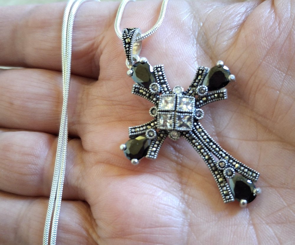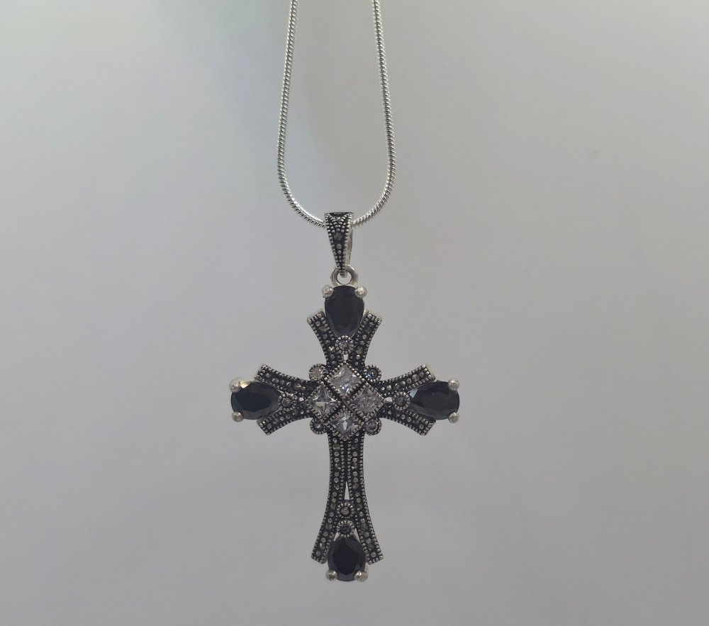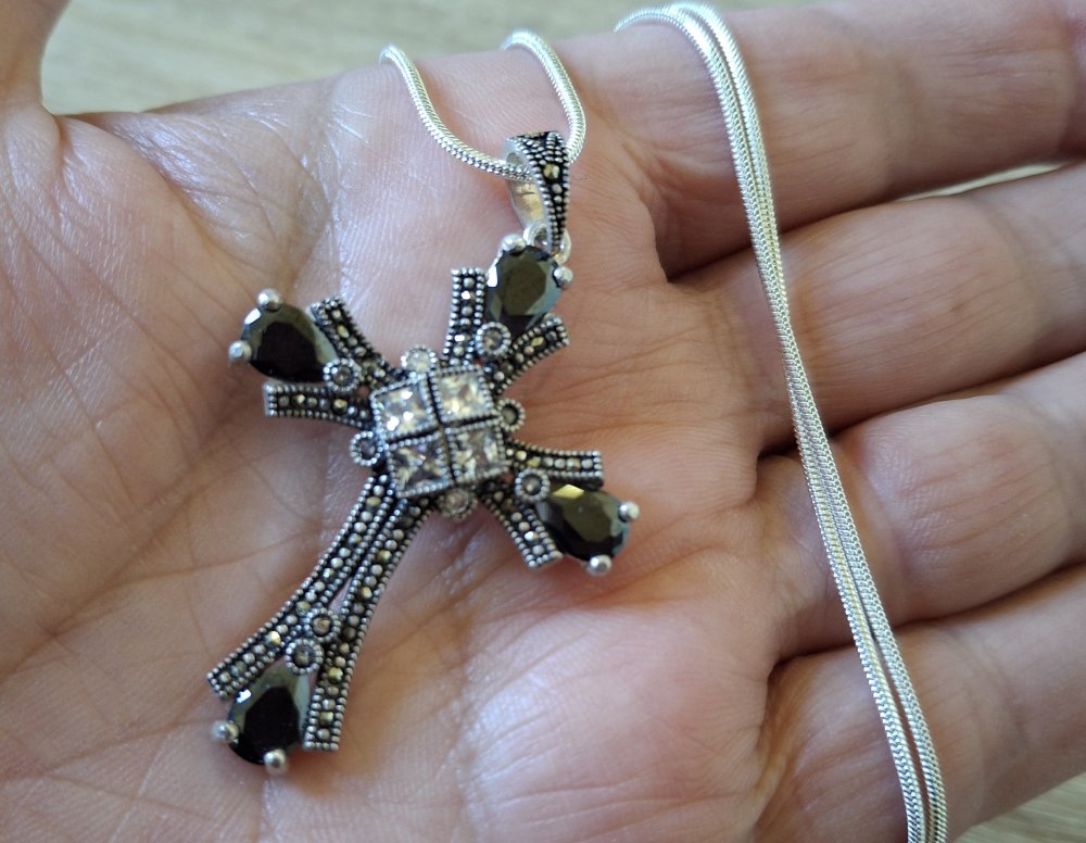Pendentif Croix Arménienne en Argent et Obsidienne, Bijoux Arméniens, Collier de la Croix de Foi