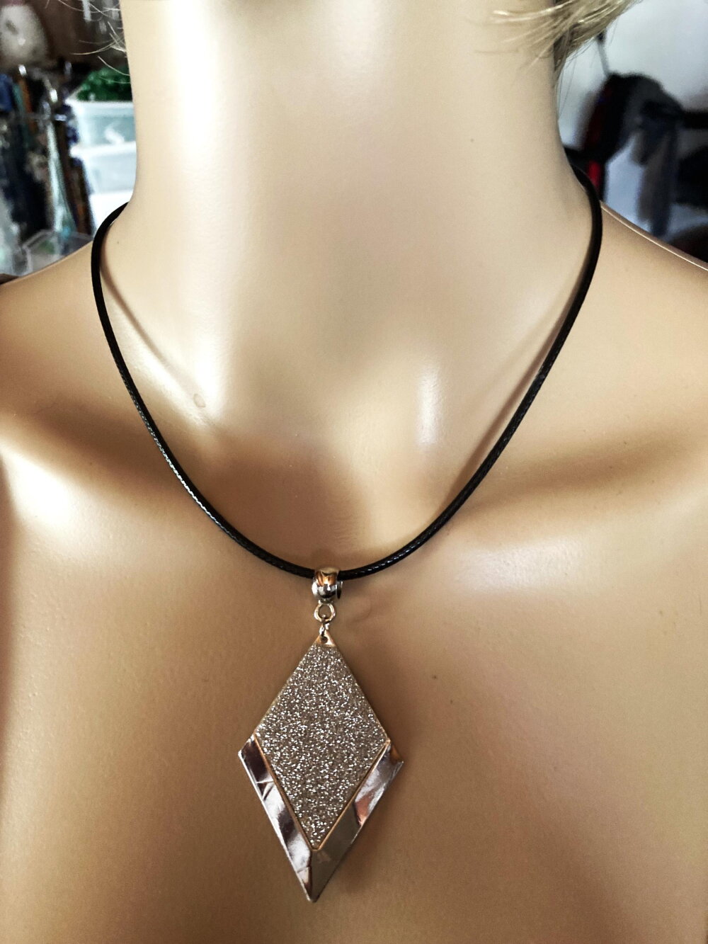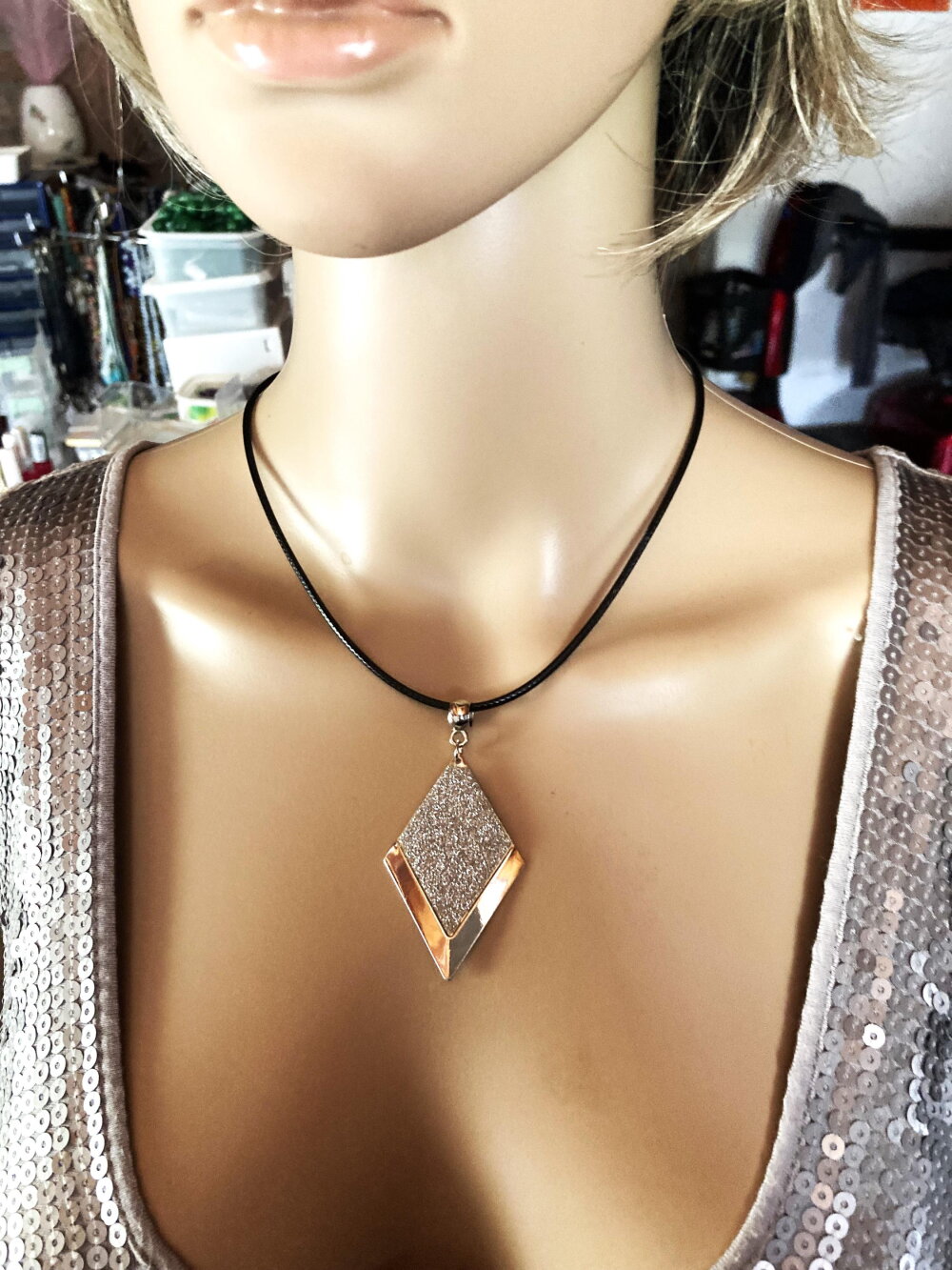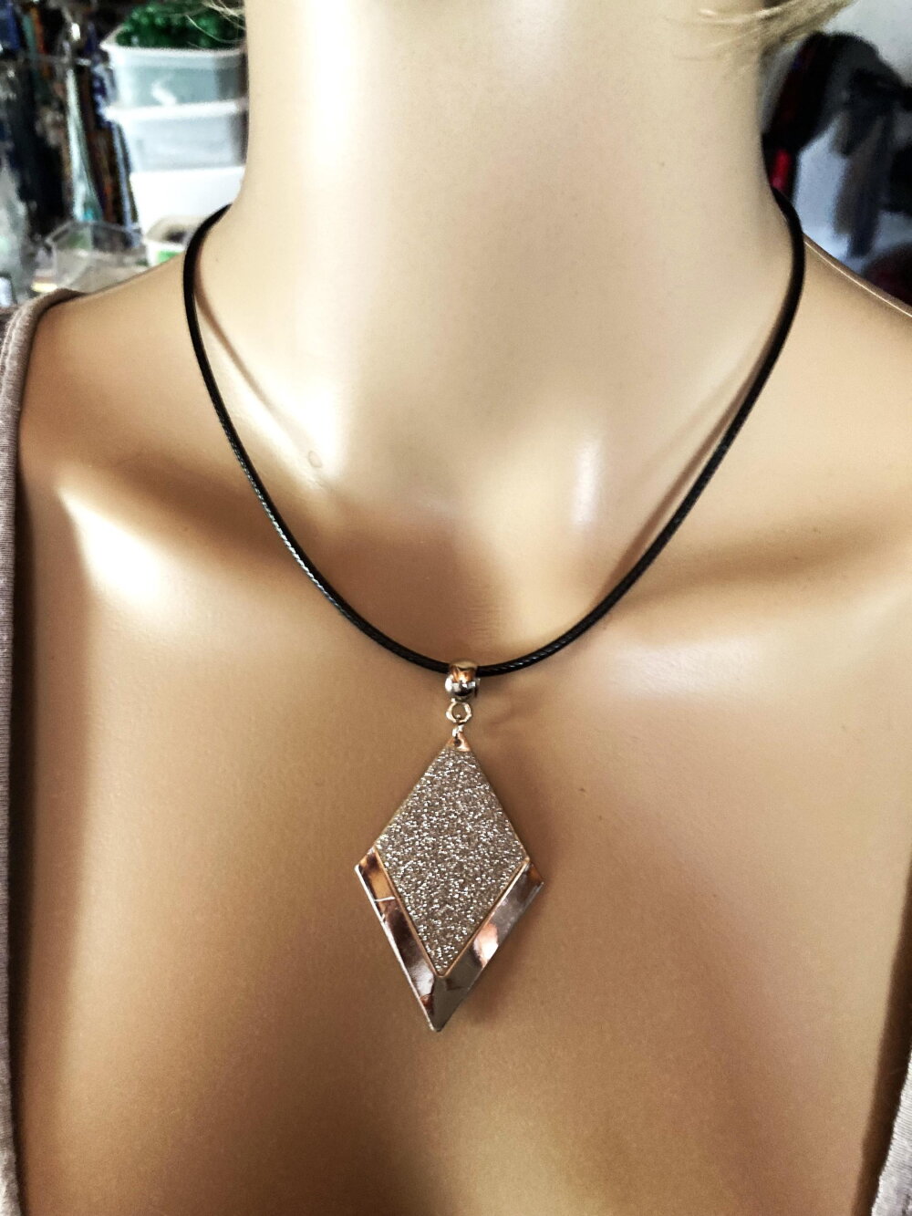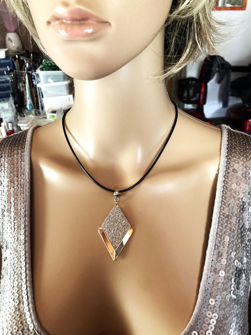 Pendentif élégant sur collier cordon en coton ciré noir 45/50 cm Bijou femme