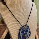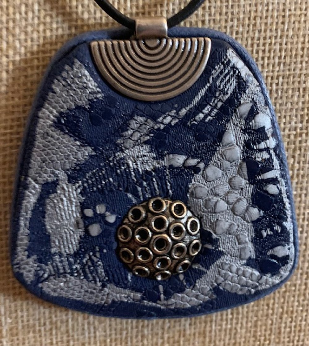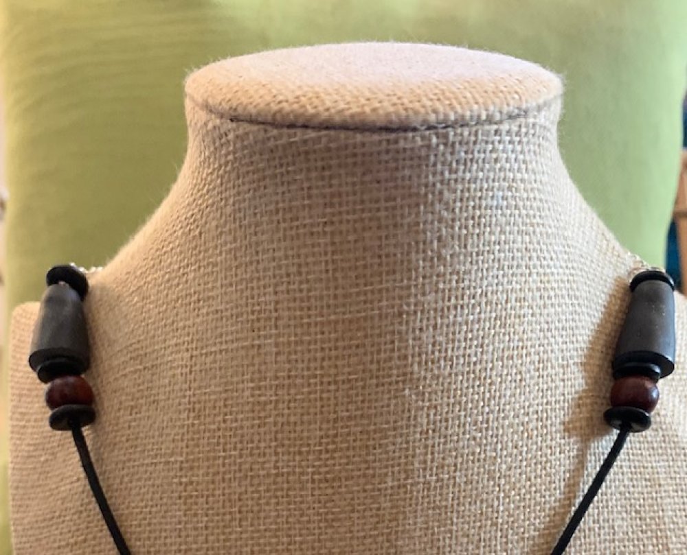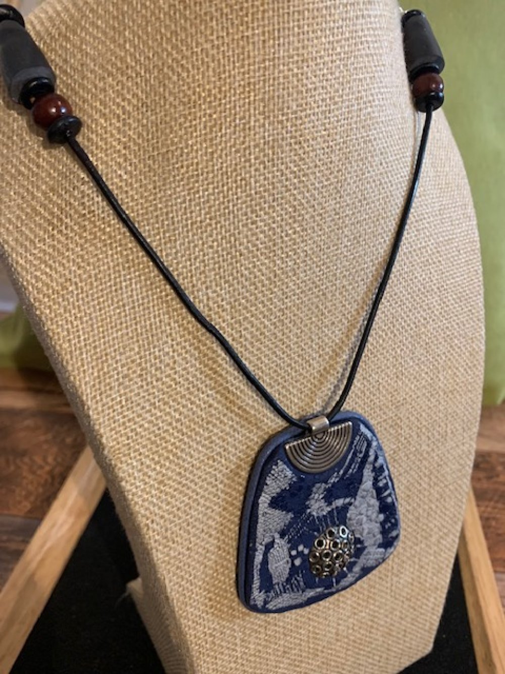 Pendentif en polymère, bois, cordon en cuir