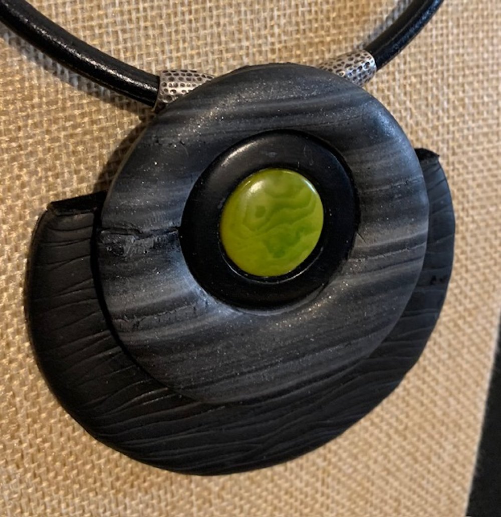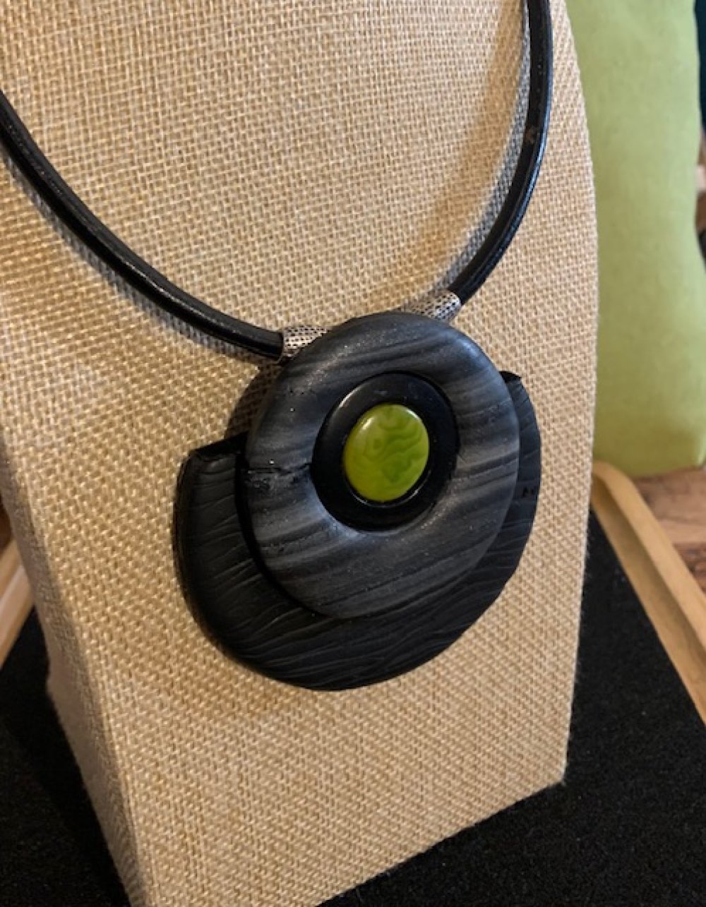 Pendentif en polymère - ivoire végétal - Cordon en cuir