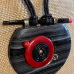 Pendentif polymère - ivoire végétal, PVC, bois, double cordon coton ciré.
