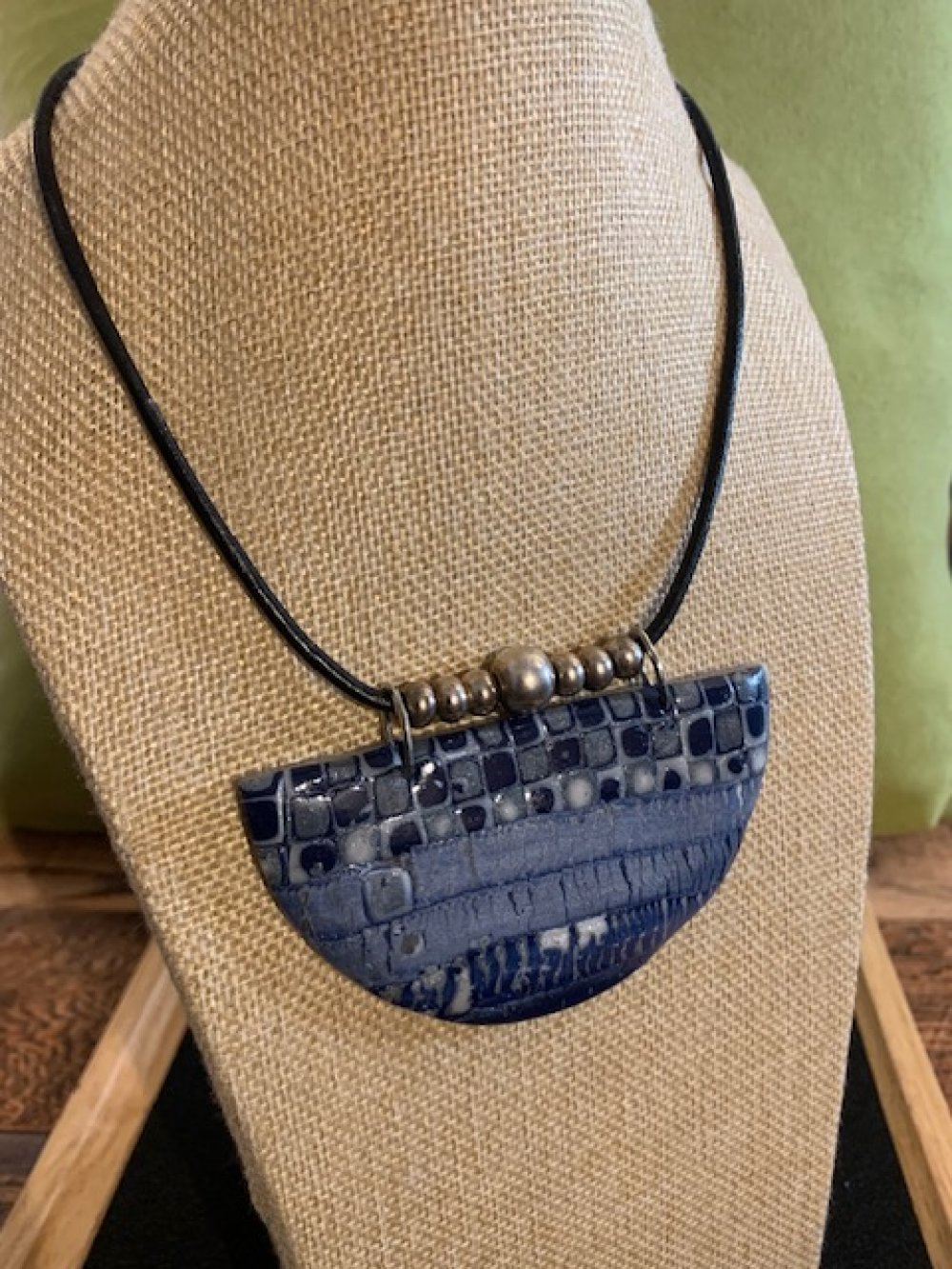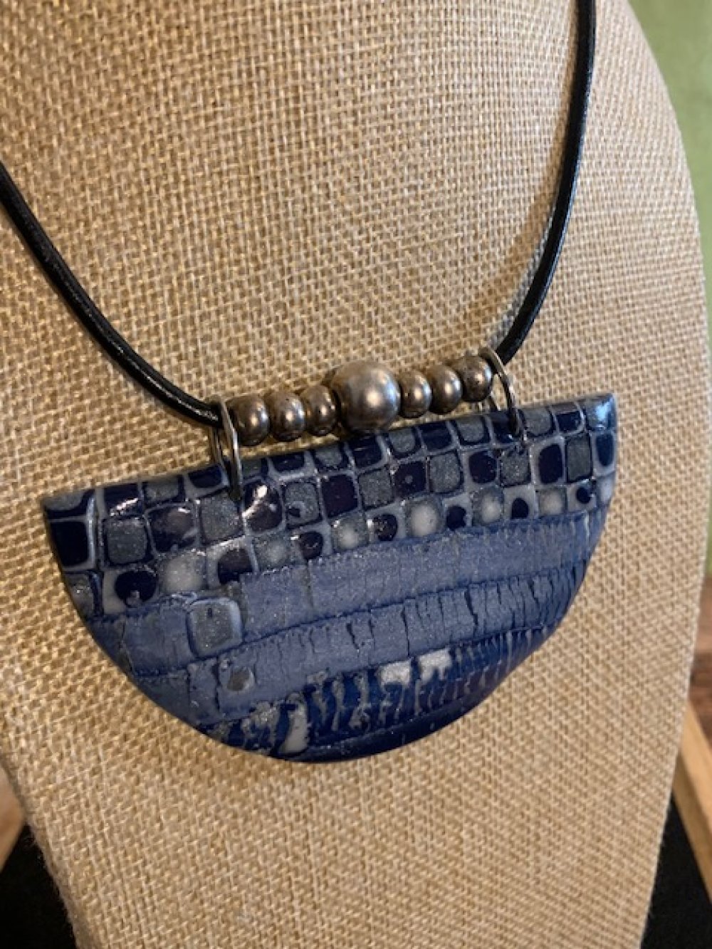 Pendentif en polymère - perles métal - cordon en cuir