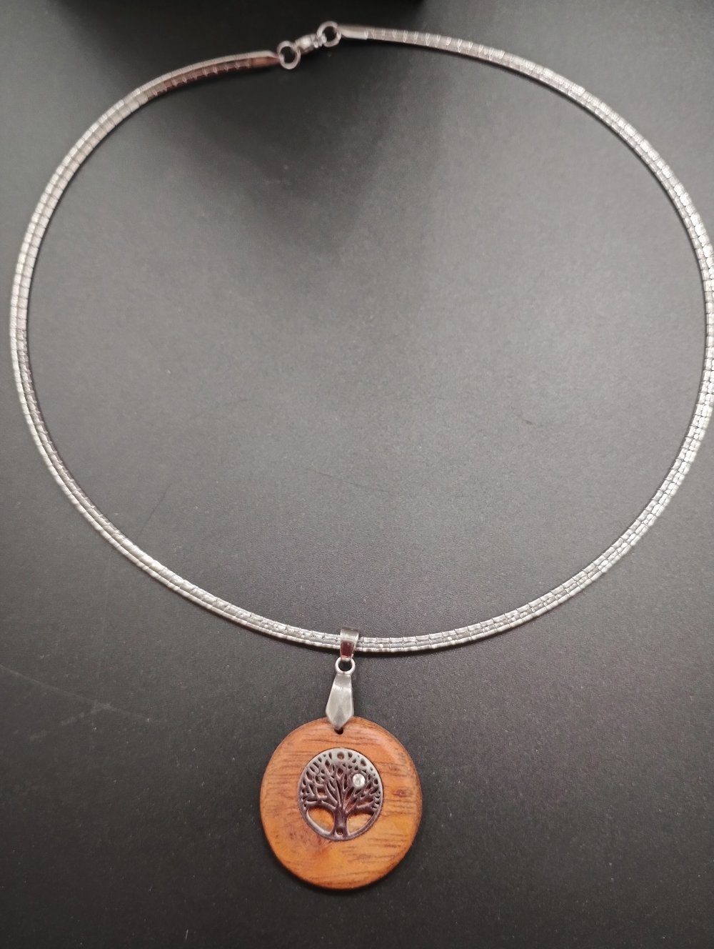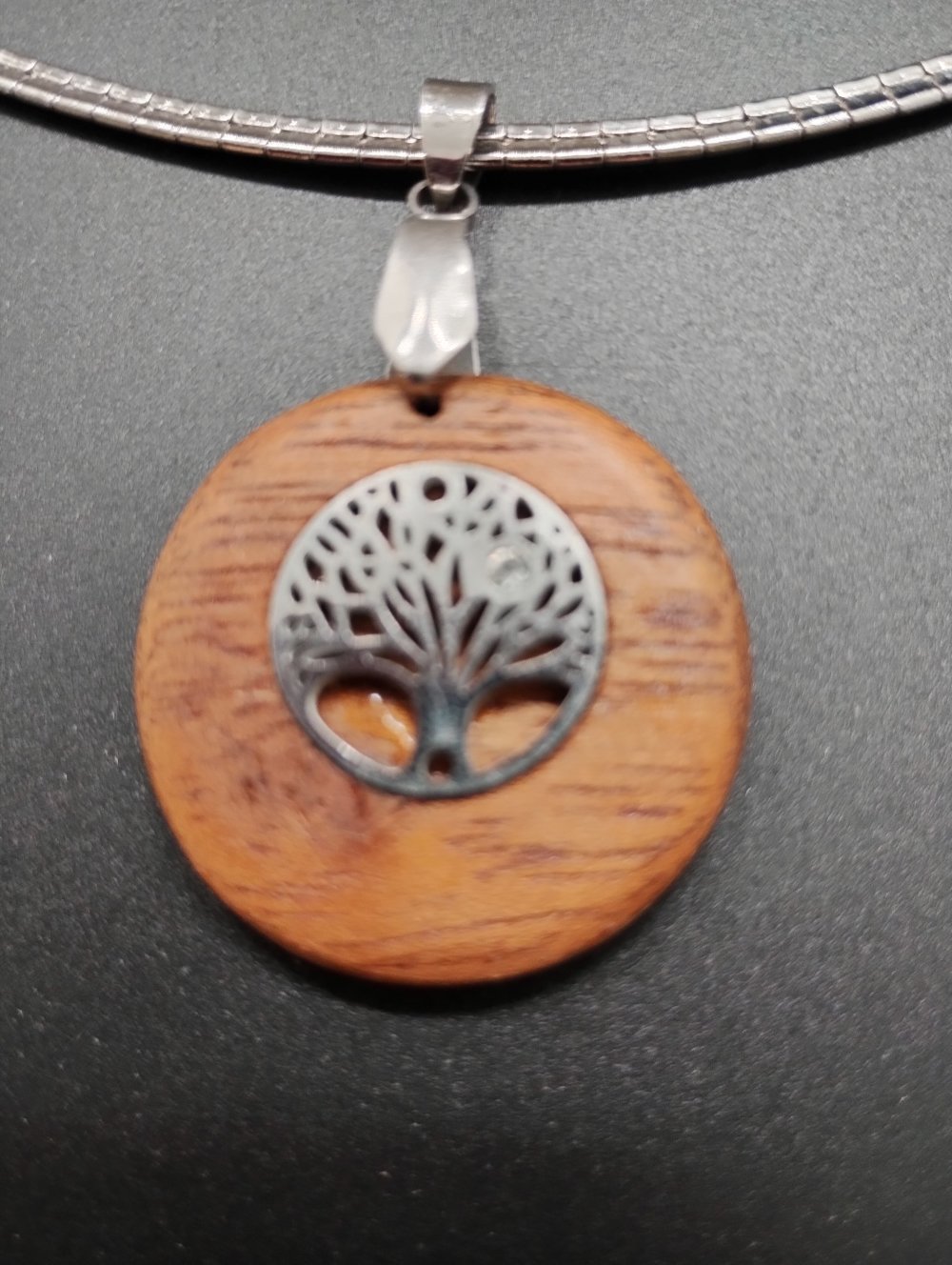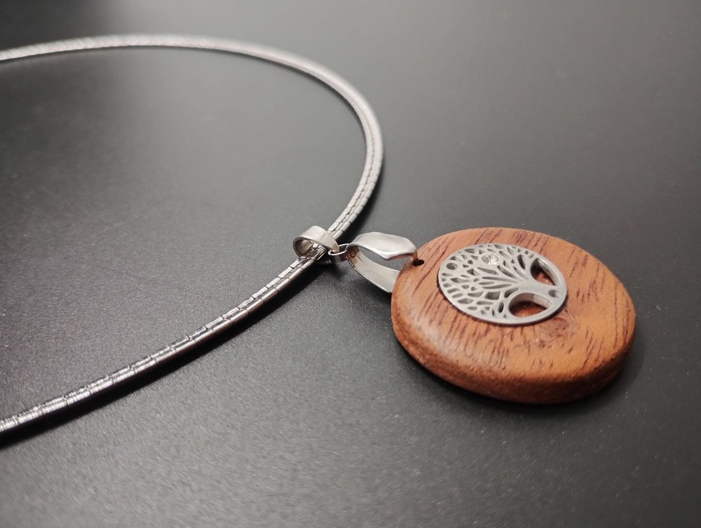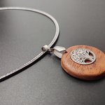 Pendentif en bois (sipo) et acier inoxydable avec un zircon