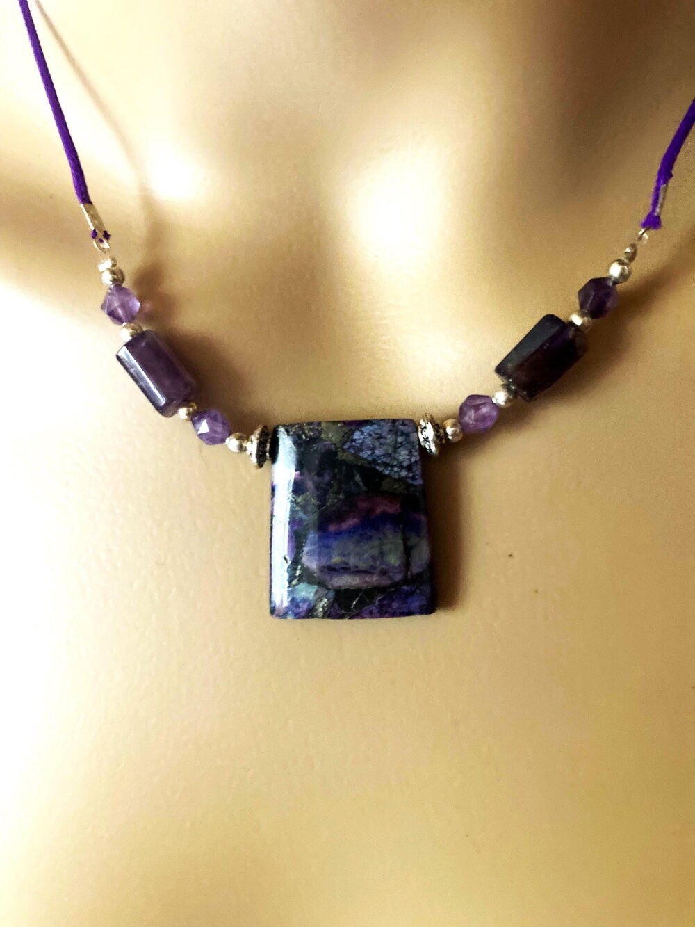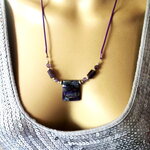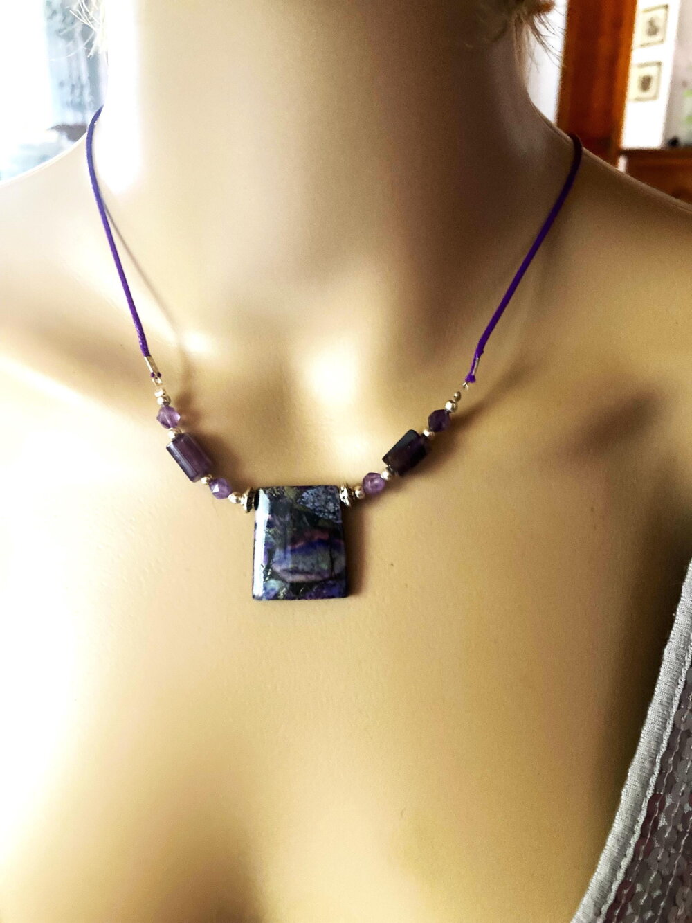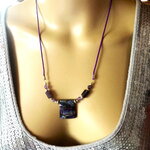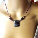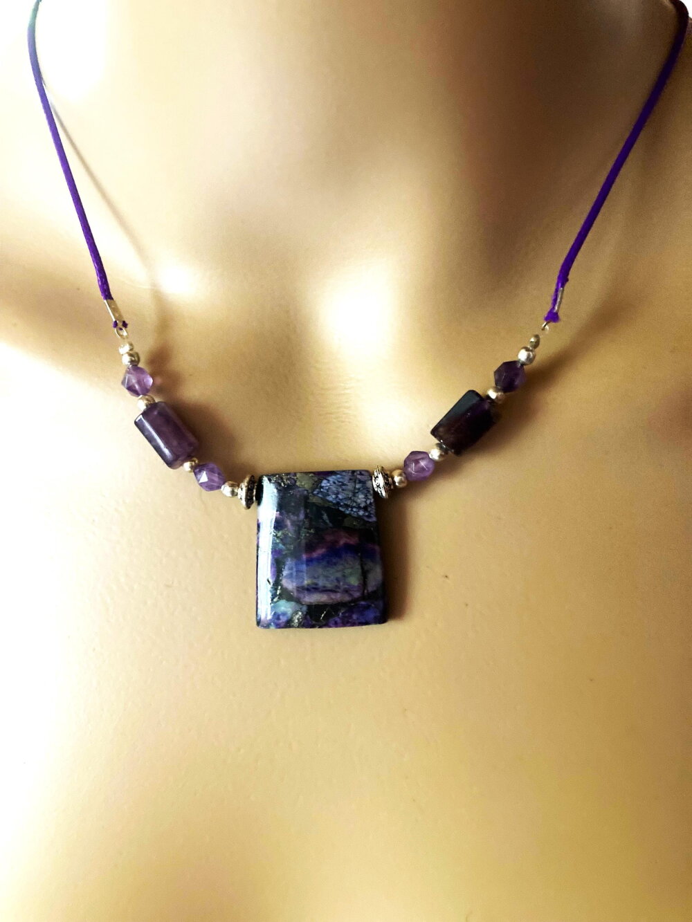 Pendentif jaspe et améthyste sur collier cordon violet 55/60 cm bijou femme