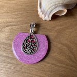 Pendentif nacré rose en bois résine fait main,