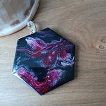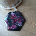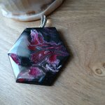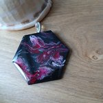 Pendentif de forme hexagonale en bois resiner noir prune ultra brillant,support de 50 mm