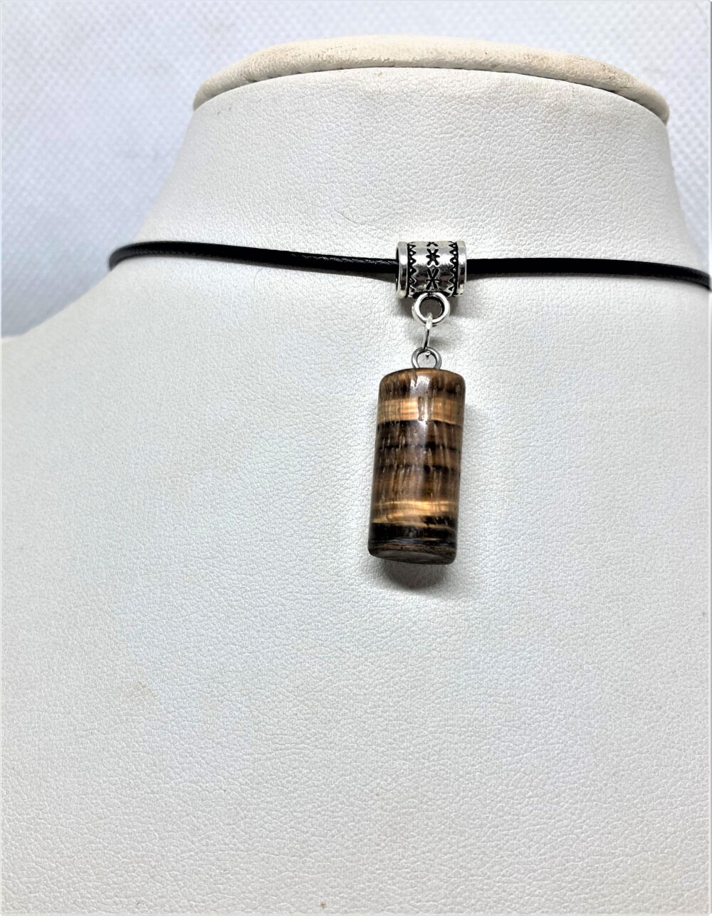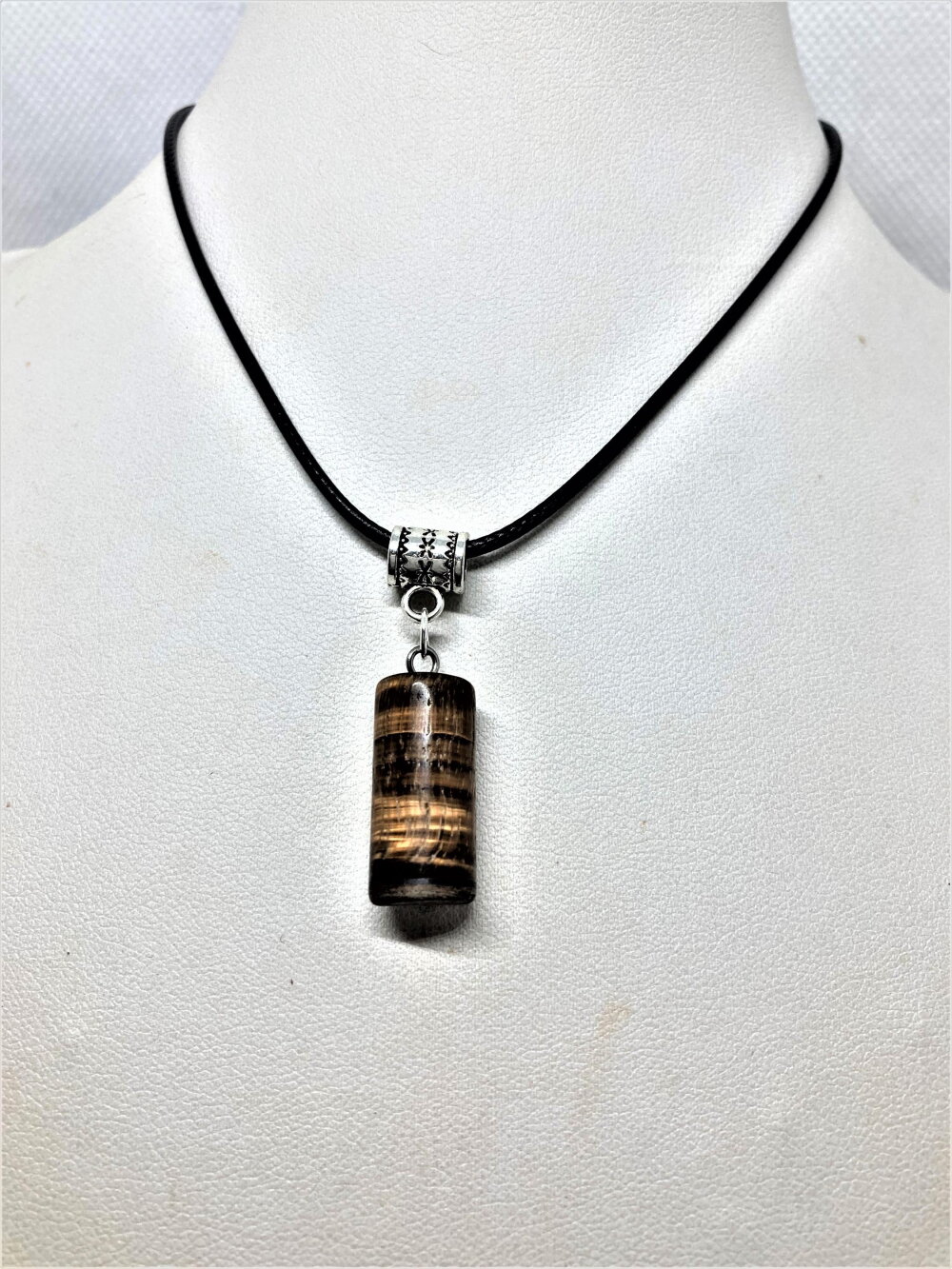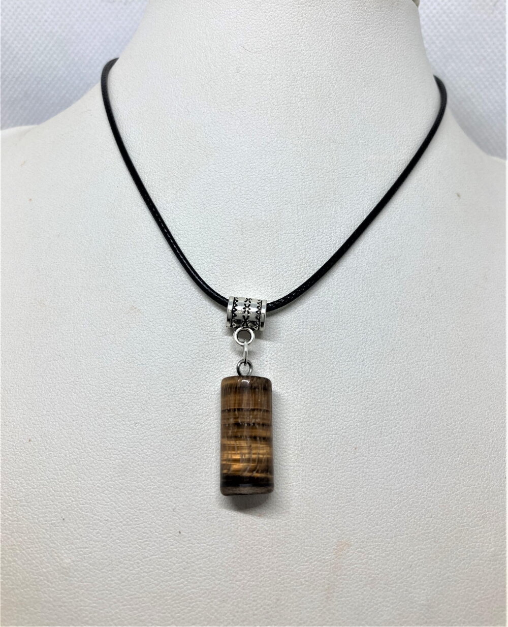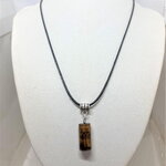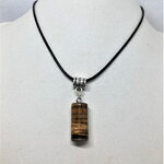 Pendentif oeil de tigre pierre sur collier cordon noir 45/50 cm bijou homme femme