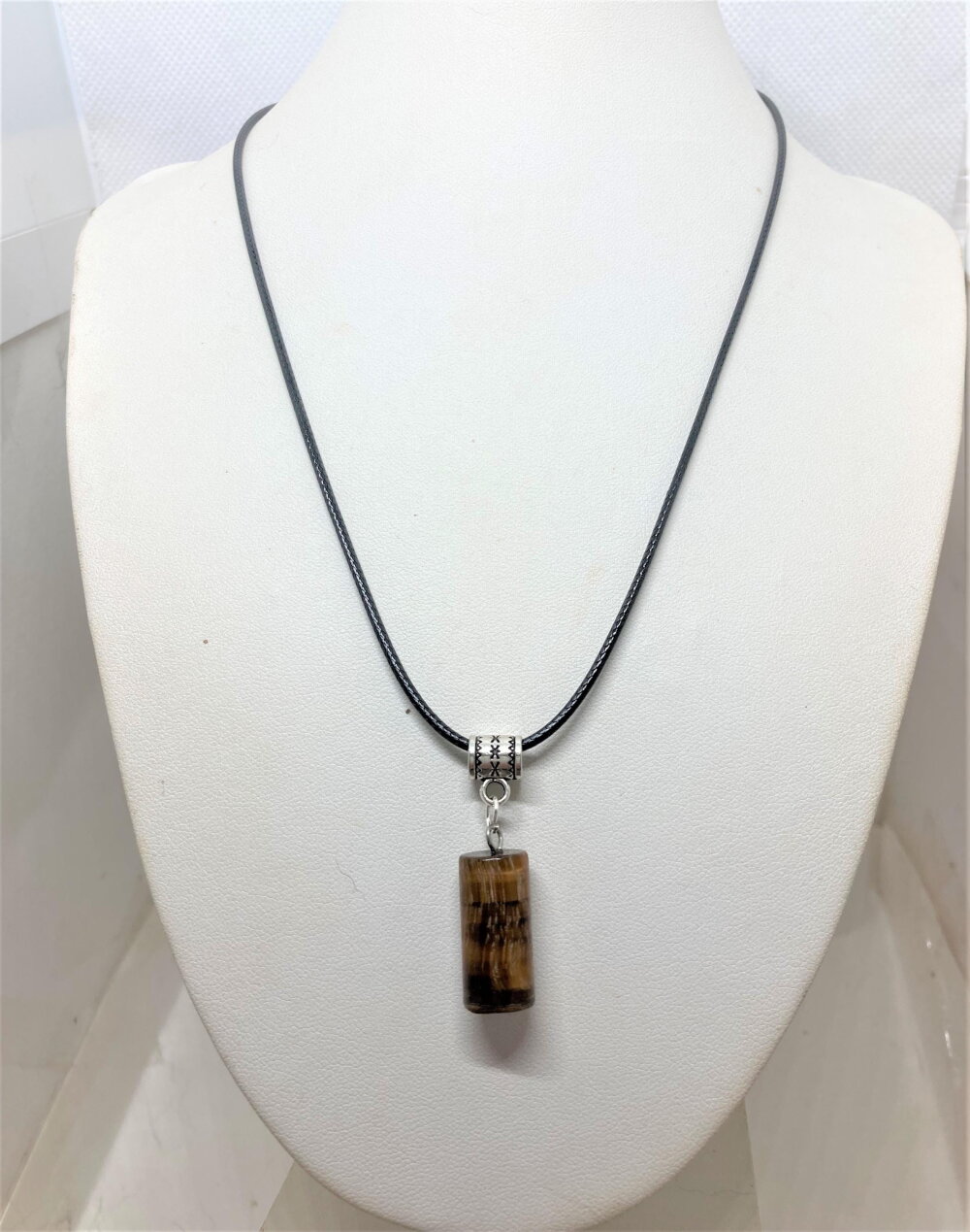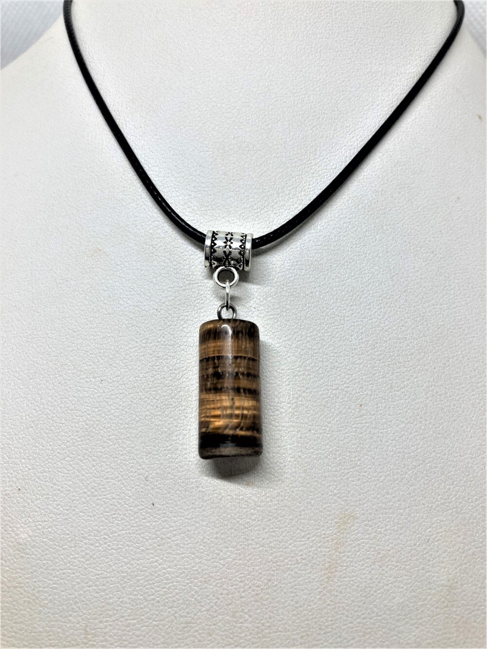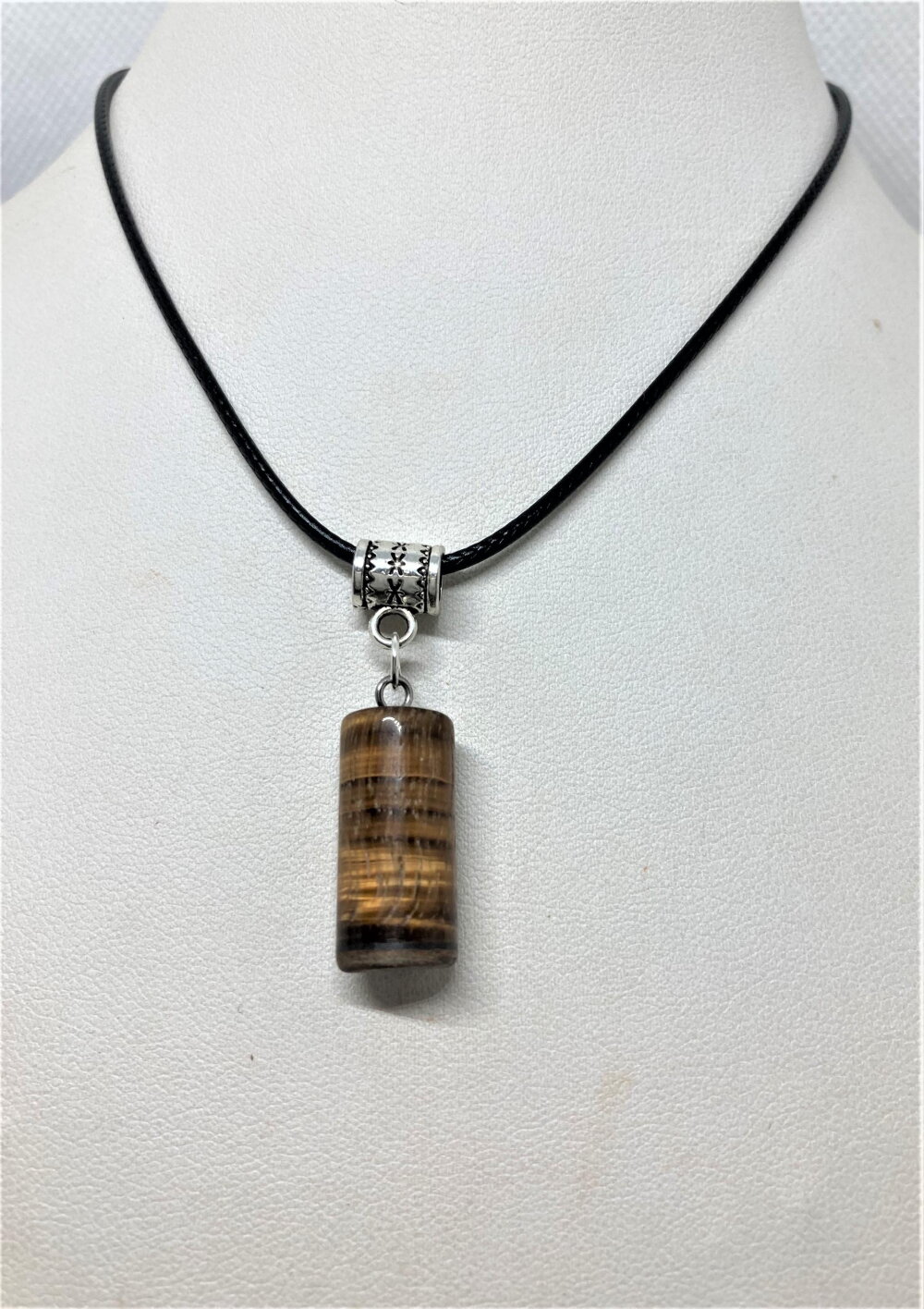 Pendentif oeil de tigre pierre sur collier cordon noir 45/50 cm bijou homme femme