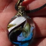 Fileuse de verre au chalumeau, je réalise moi-même la plupart des perles qui ornent mes créations. Le verre est recuit dans un four spécial de perlier pour garantir sa solidité et sa longévité.
