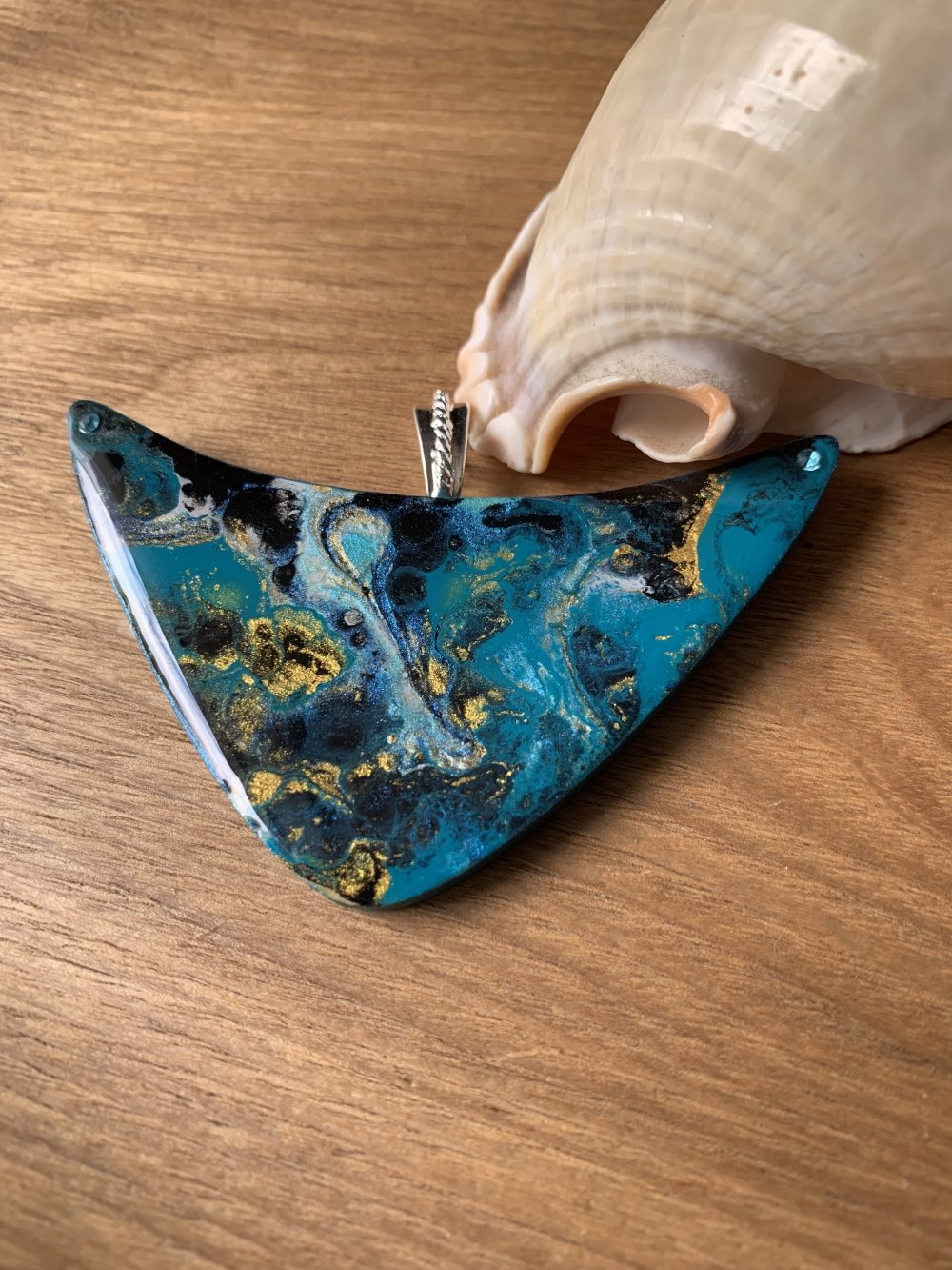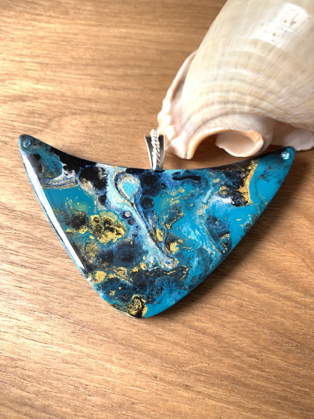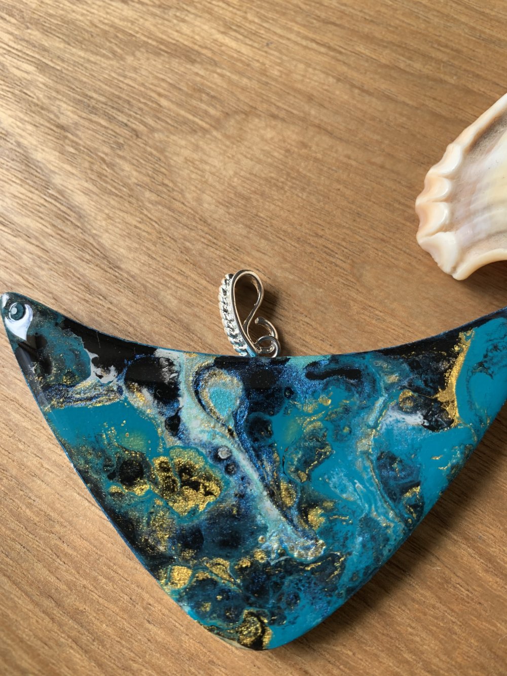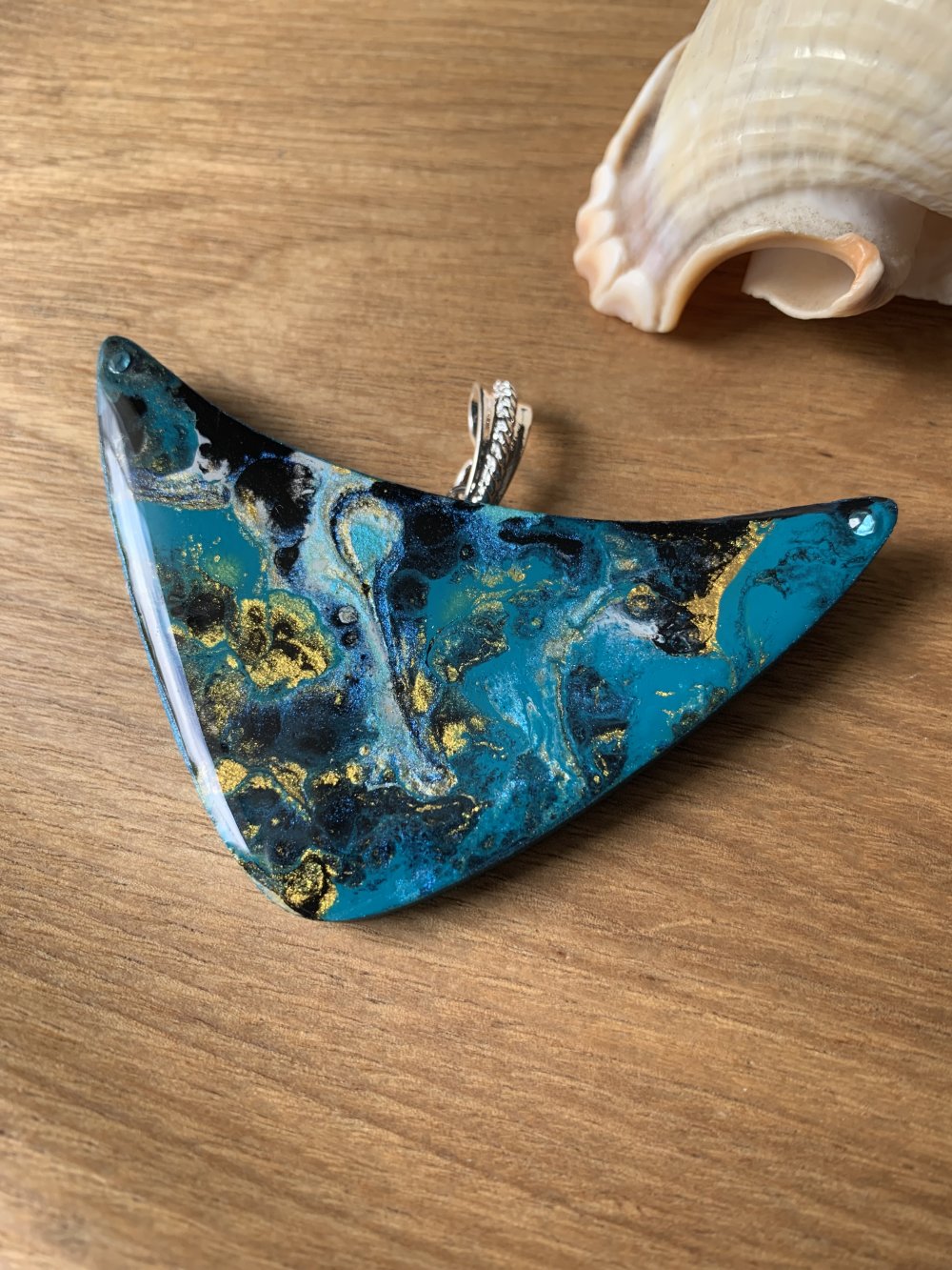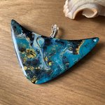 Pendentif plastron en bois et résine fait main,75 x 40 mm