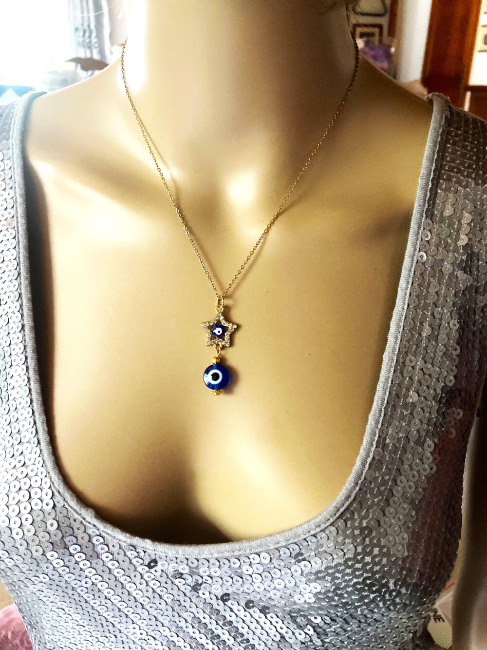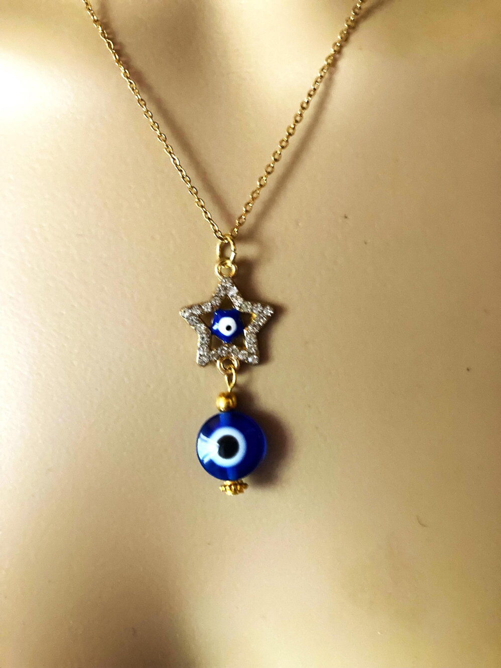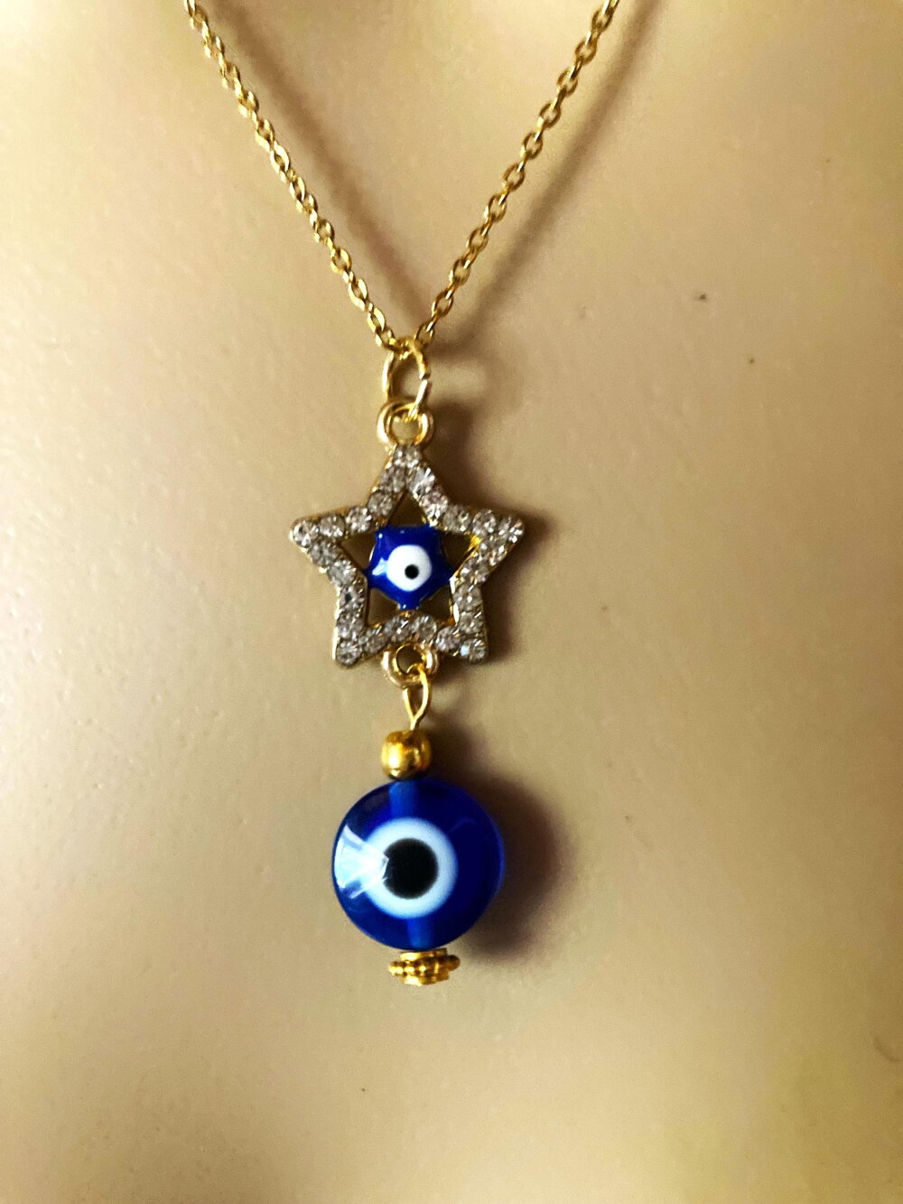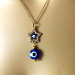 Très joli pendentif étoile avec strass, porte bonheur, grec, tendance. Bijou homme femme.