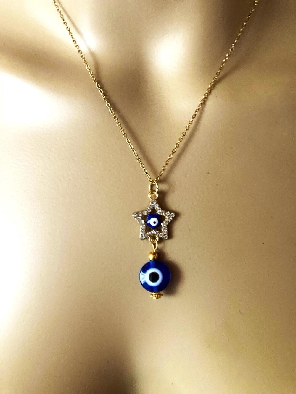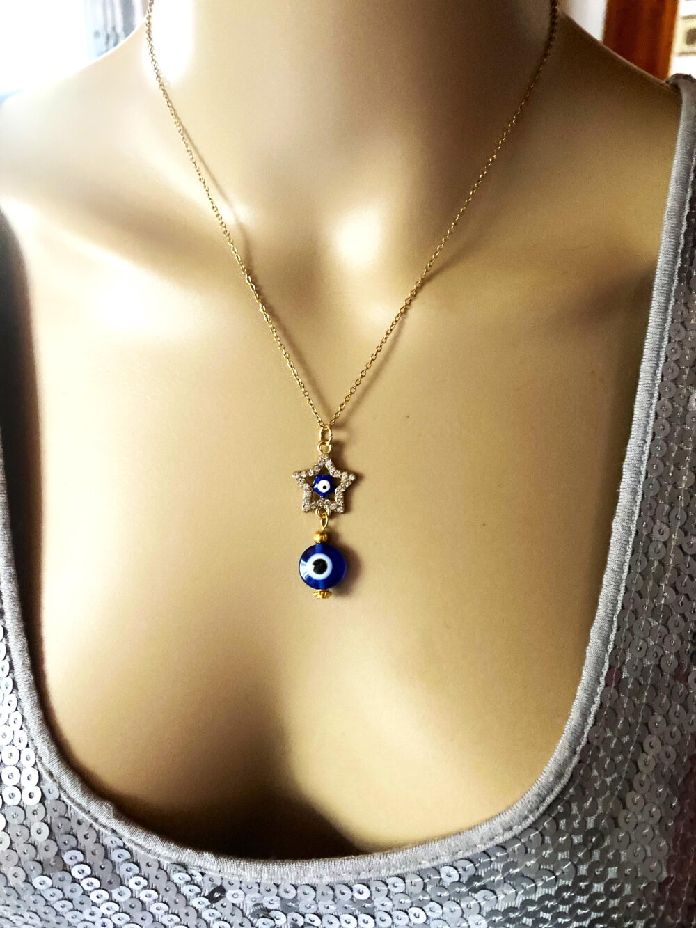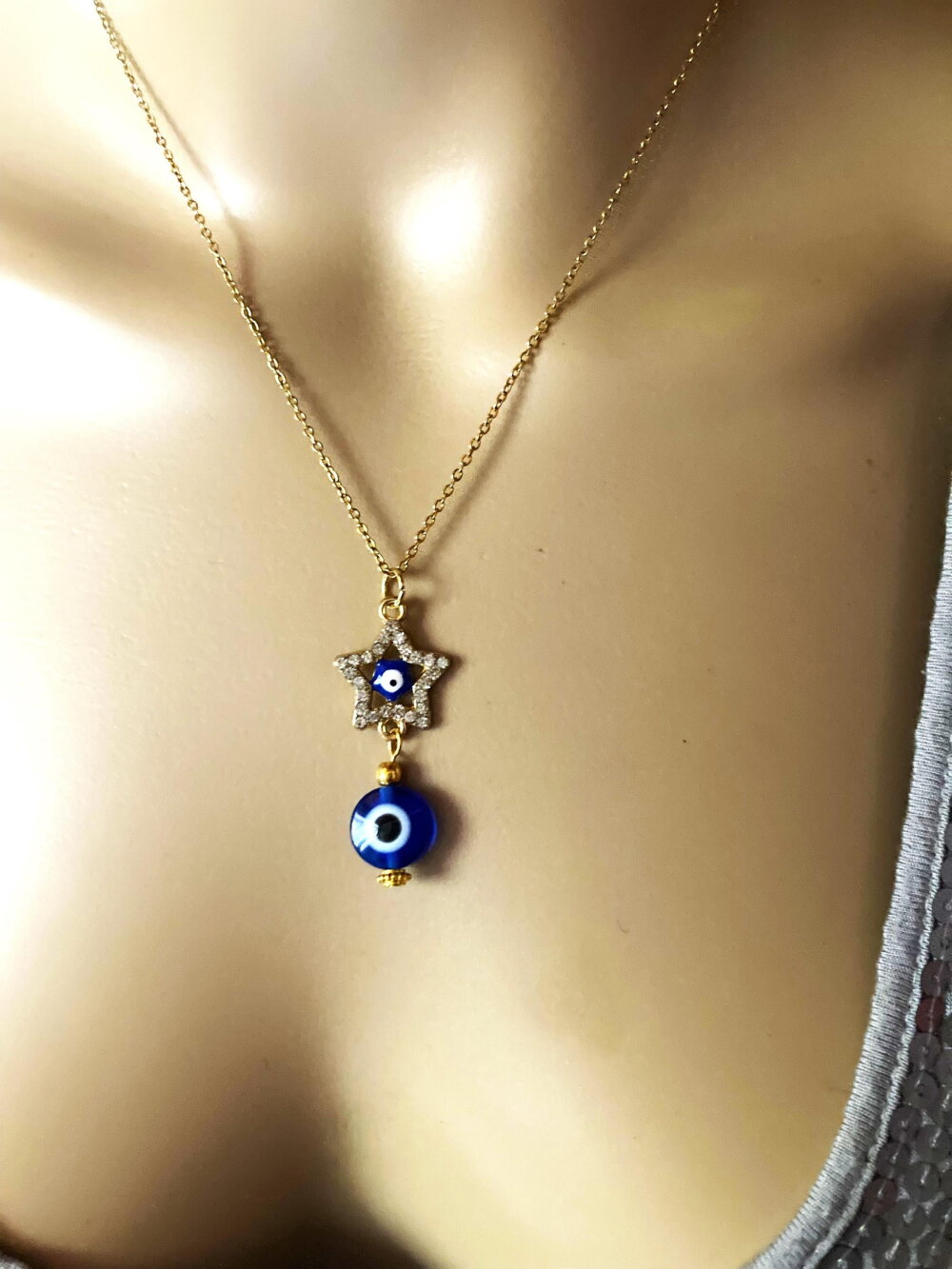Pendentif porte bonheur grec protection strass tendance collier chaîne fine 40/45 cm bijou homme femme