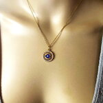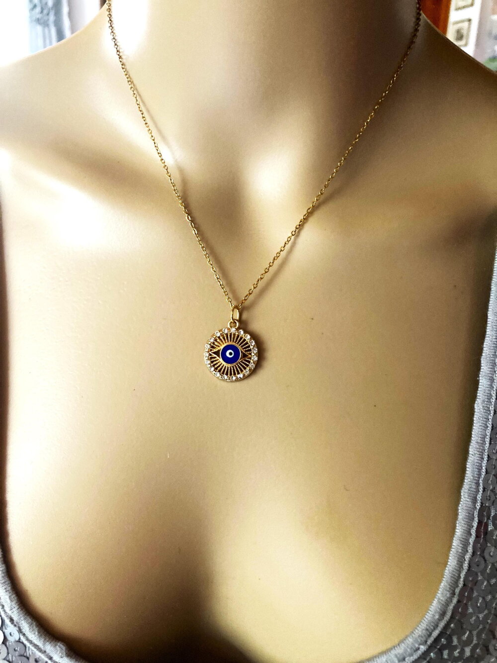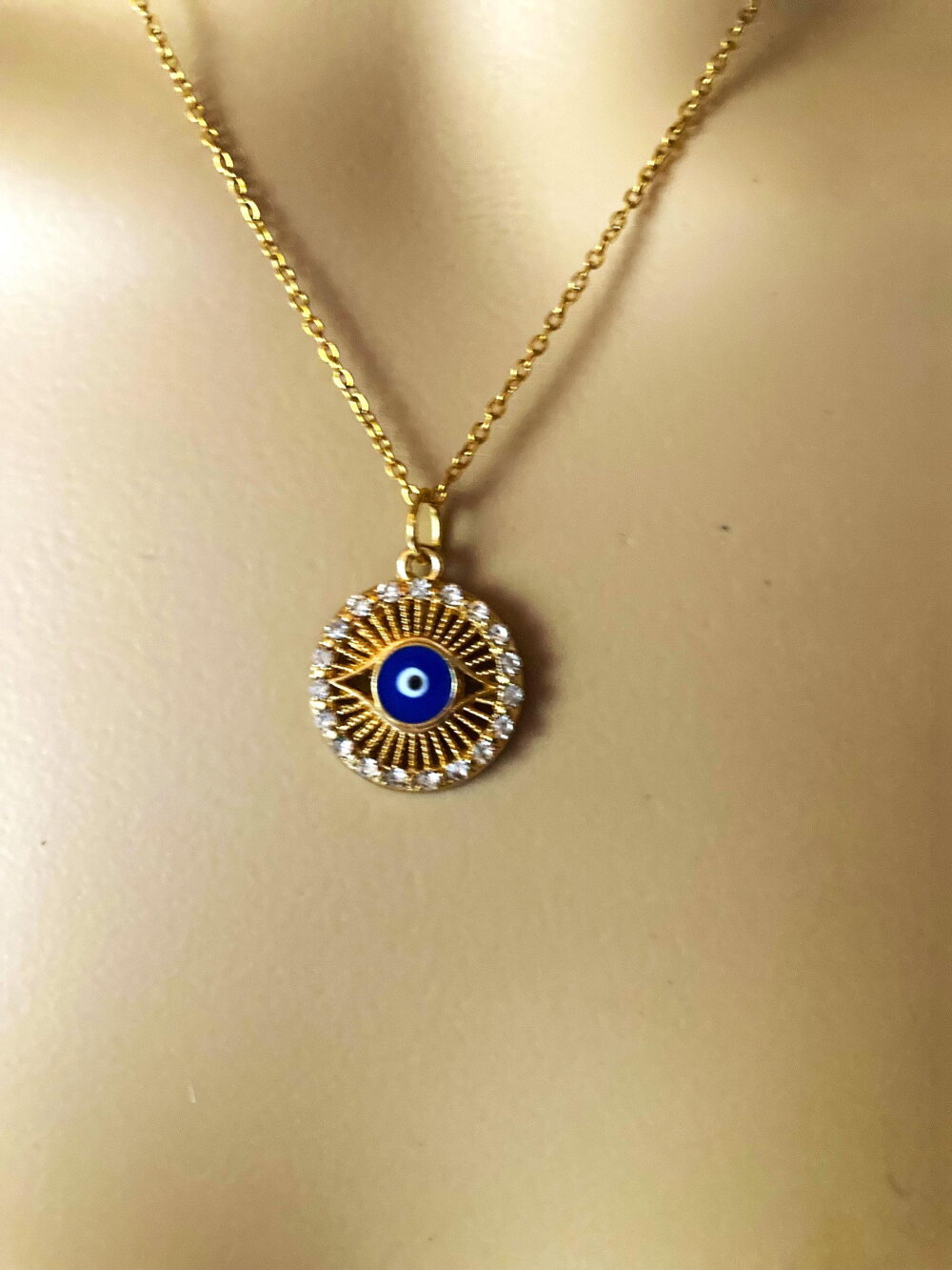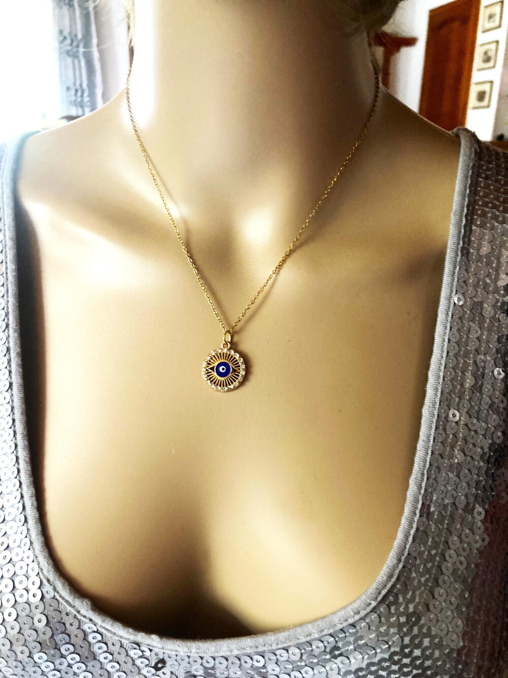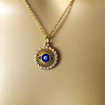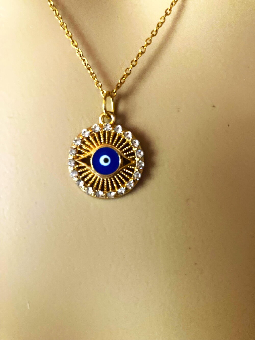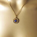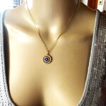 Très joli pendentif rond avec strass, porte bonheur, grec, tendance. Bijou homme femme.