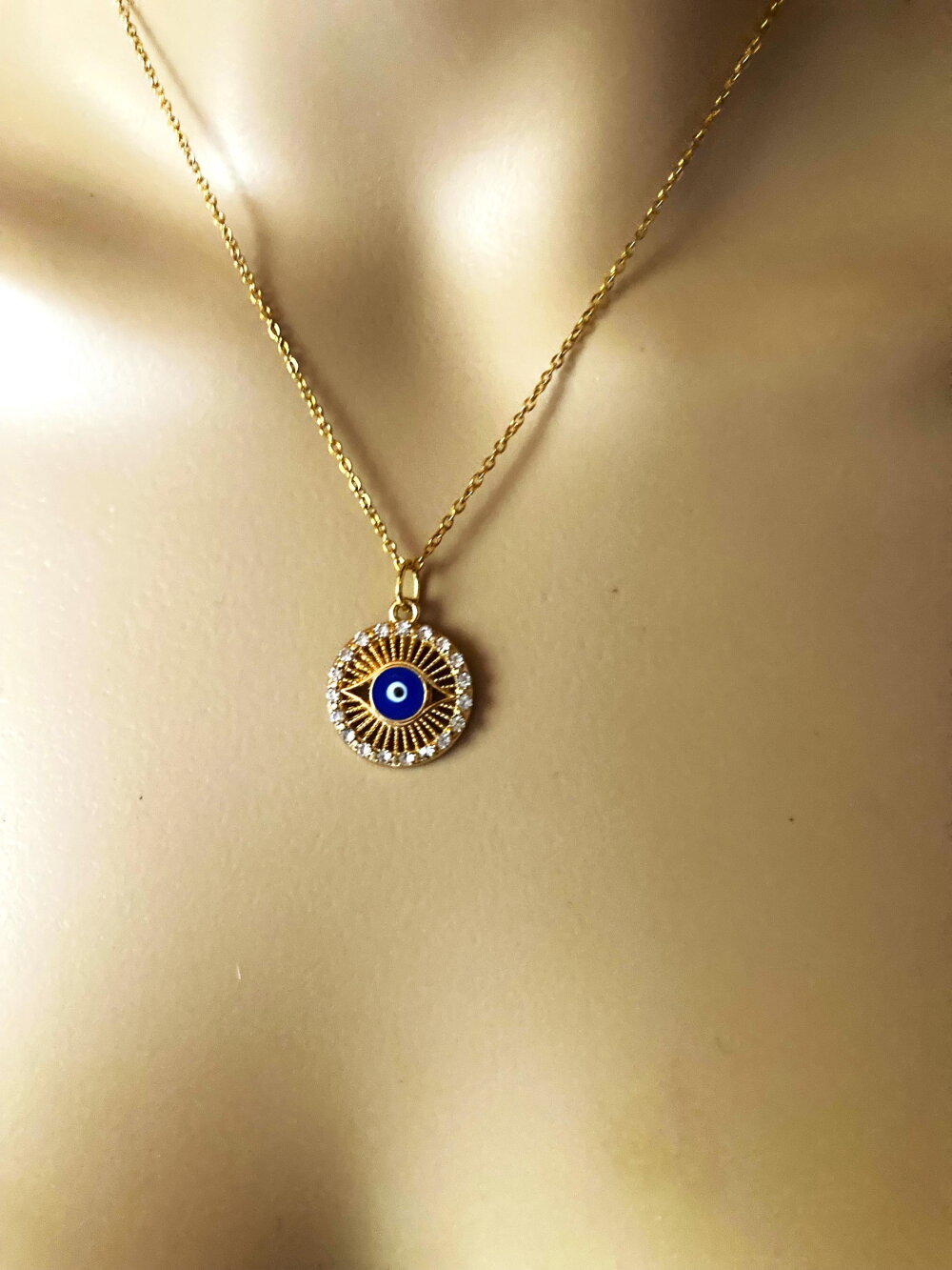 Pendentif porte bonheur grec protection strass tendance collier chaîne fine 40/45 cm bijou homme femme