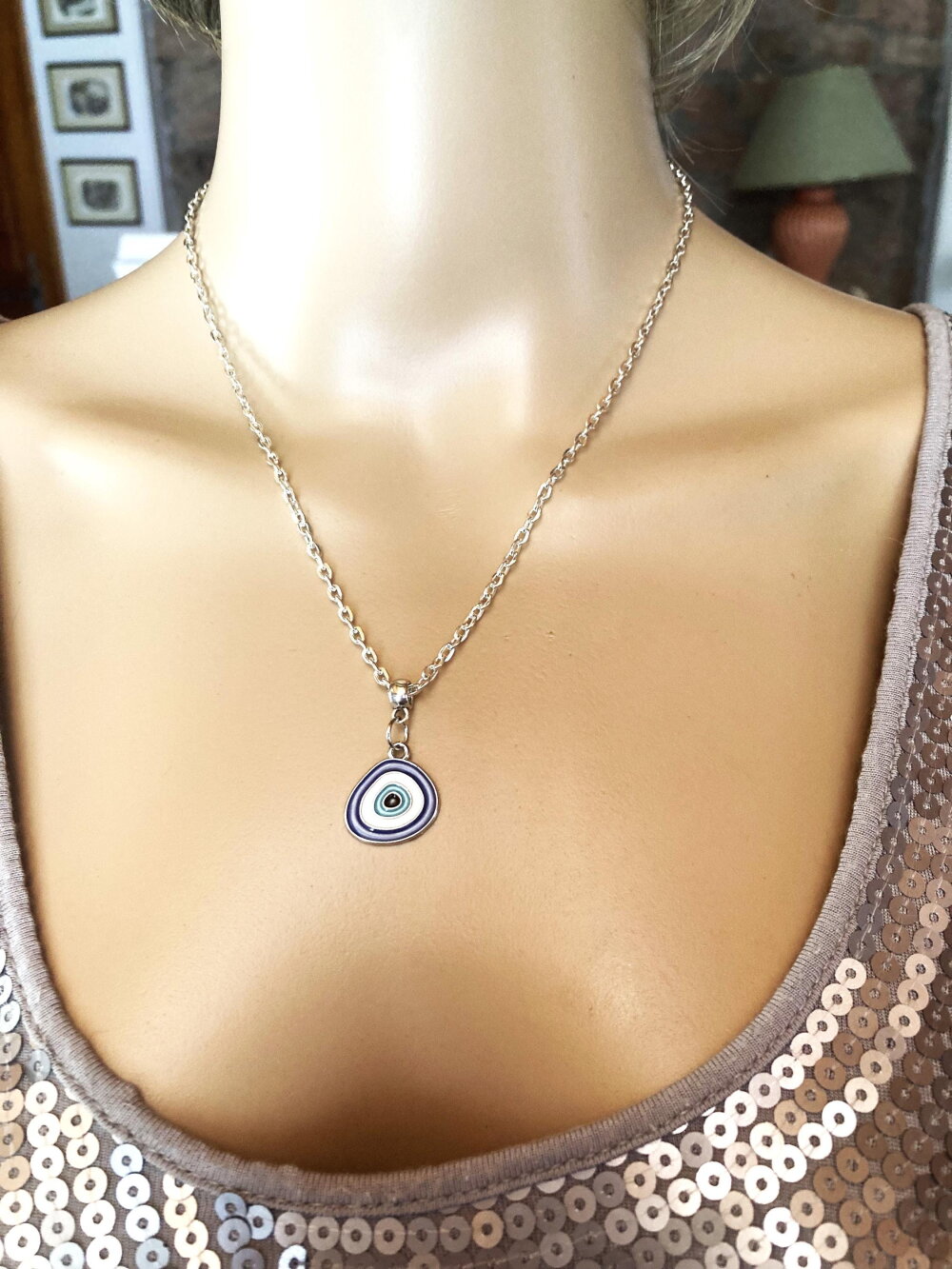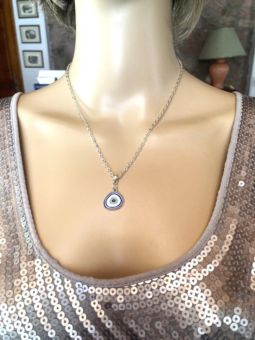 Très joli pendentif porte bonheur, grec, tendance. Bijou homme femme.