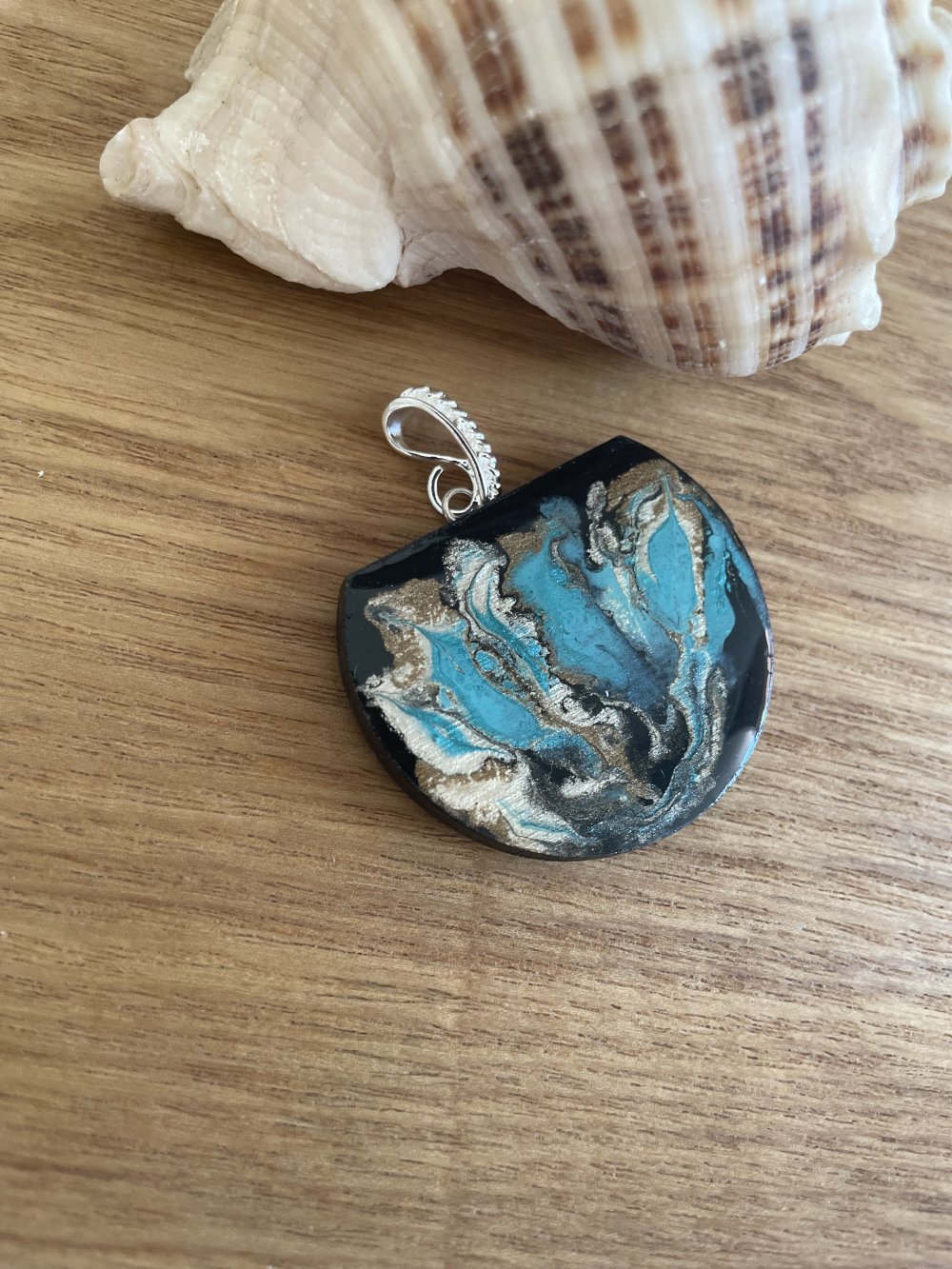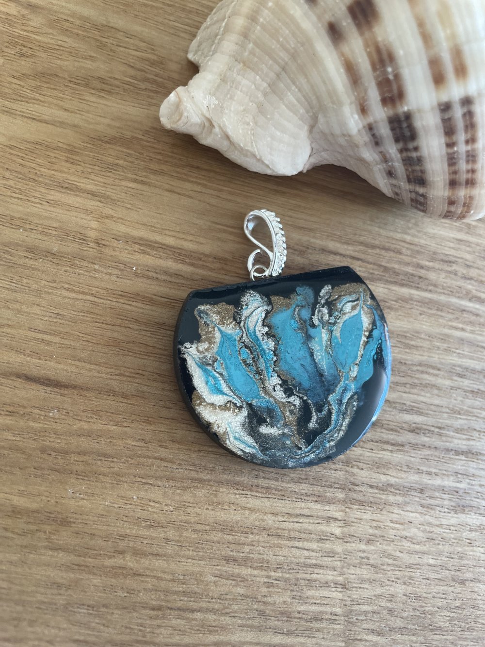 Pendentif en bois résiner fait main de 40x30 mm