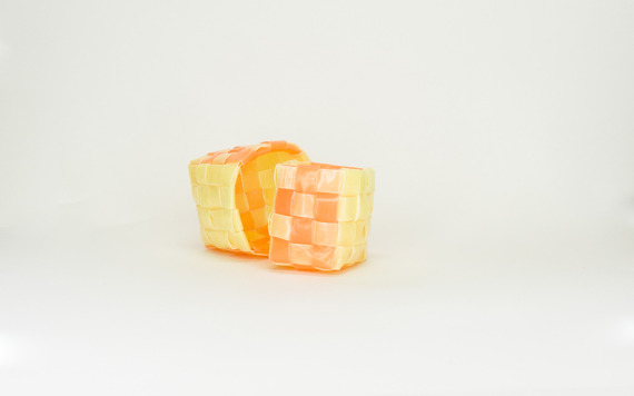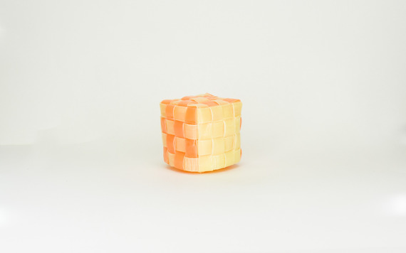 Mini-boîte confectionnée en pailles à boire tissées à la main, sans aucune colle ni agrafe.