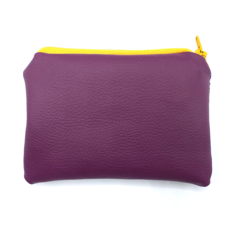 Grand porte monnaie éventails violet prune en coton et simili-cuir