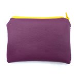 Grand porte monnaie zippé, en coton motif éventails violets et blancs et simili cuir violet, doublée avec un tissu en coton gris.