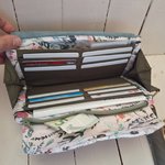Ce grand portefeuille a également deux larges compartiments ( environ 21 cm) à l'avant et à l'arrière d'une profondeur de 7 cm. L'un se ferme à l'aide d'une fermeture éclair qui peut servir de porte-monnaie.