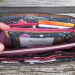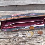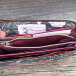 Ce grand portefeuille zippée est une pièce unique fabriqué artisanalement en Alsace . Il est composé de différents tissus et de faux-cuir .