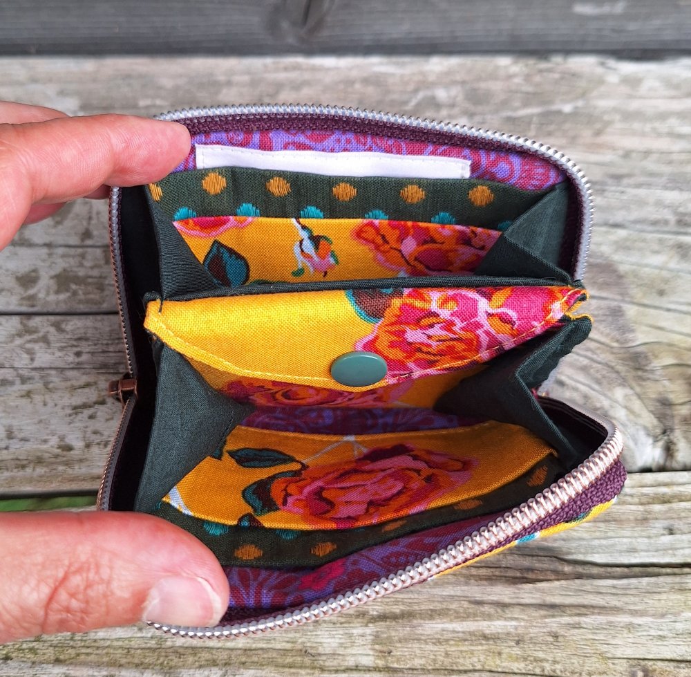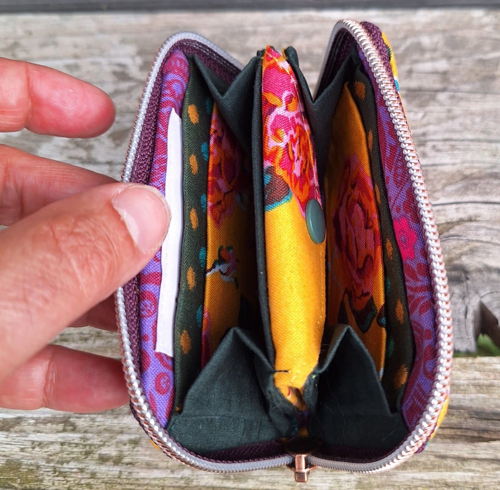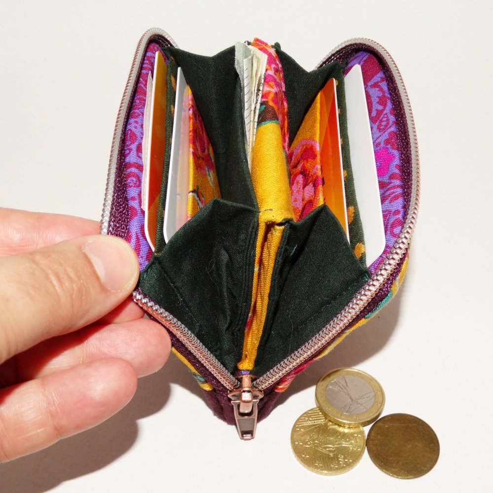 Tous les tissus ont été entoilés afin de donner de la tenue au porte-monnaie et d'assurer sa durée dans le temps.