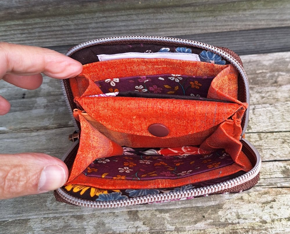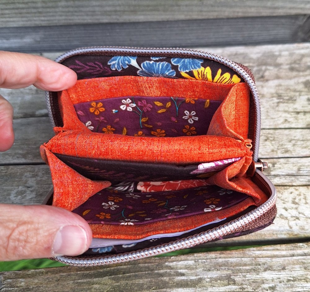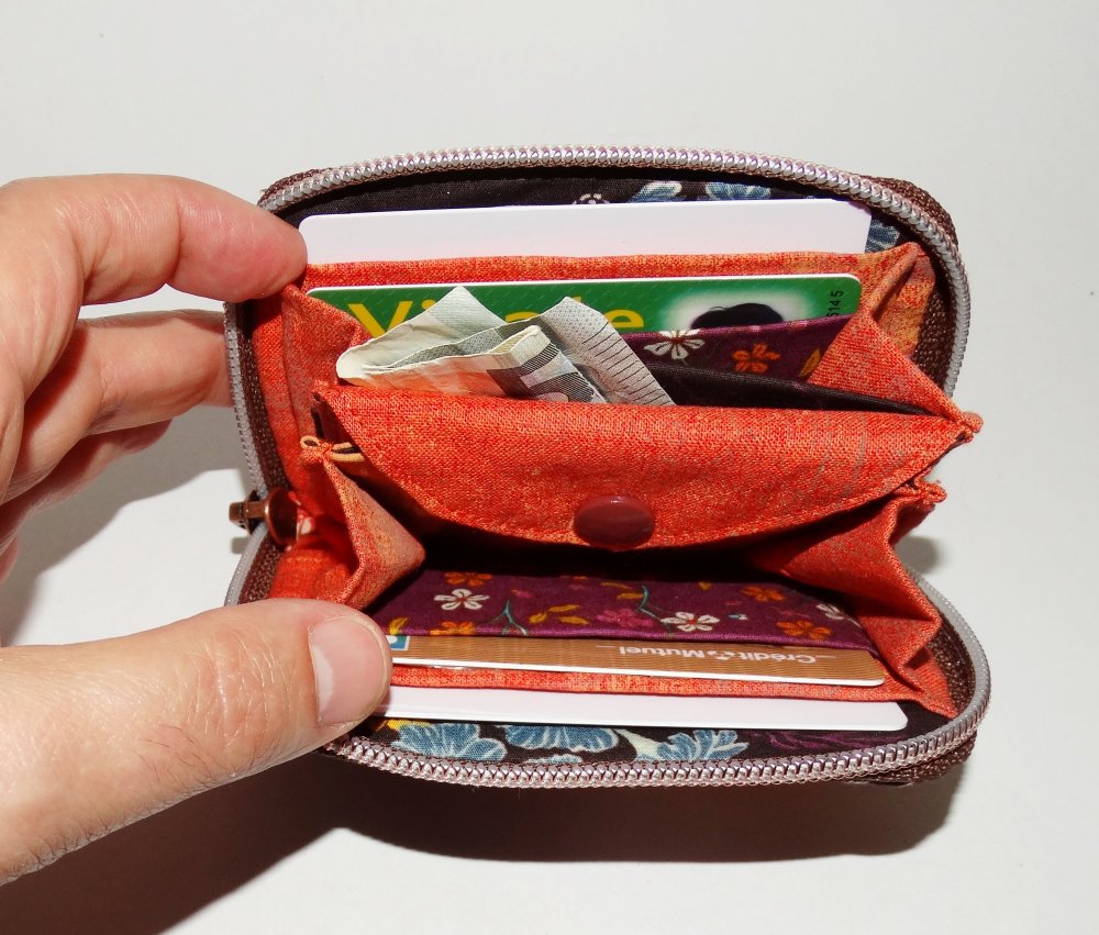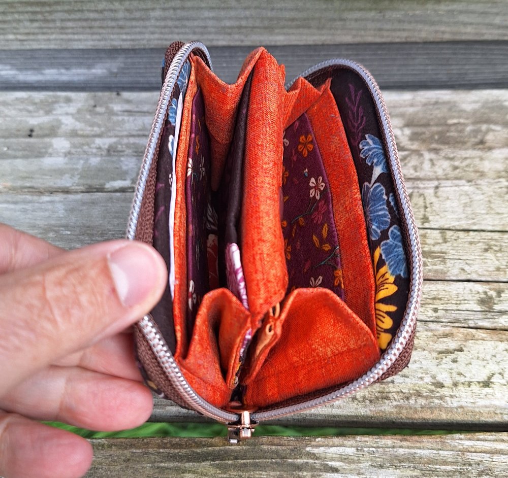 Un mini portefeuille zippé pour femme aux couleurs de l'automne qui permet d'avoir l'essentiel avec soi et qui tient dans la main. Ce petit portefeuille est très pratique pour faire du sport ou faire une course rapide.