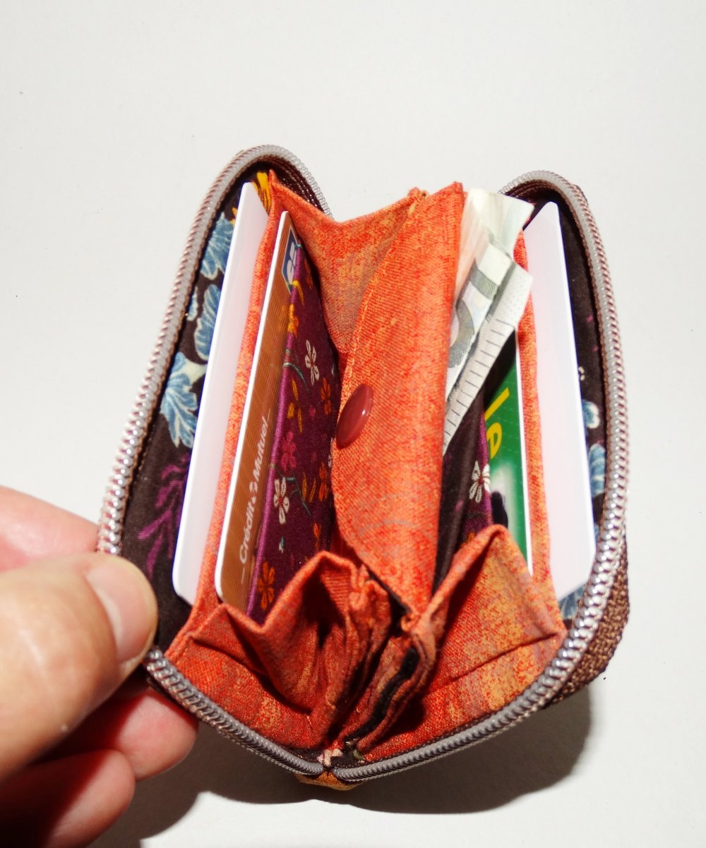 Tous les tissus ont été entoilés afin de donner de la tenue au porte-monnaie et d'assurer sa durée dans le temps.