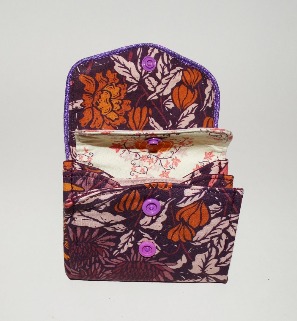 Un petit porte-monnaie sympa et pratique aux couleurs de l'automne qui tient facilement dans la main et se glisse aisément dans une poche. Il peut contenir plusieurs cartes , de la monnaie, des billets de banque et même un clé.