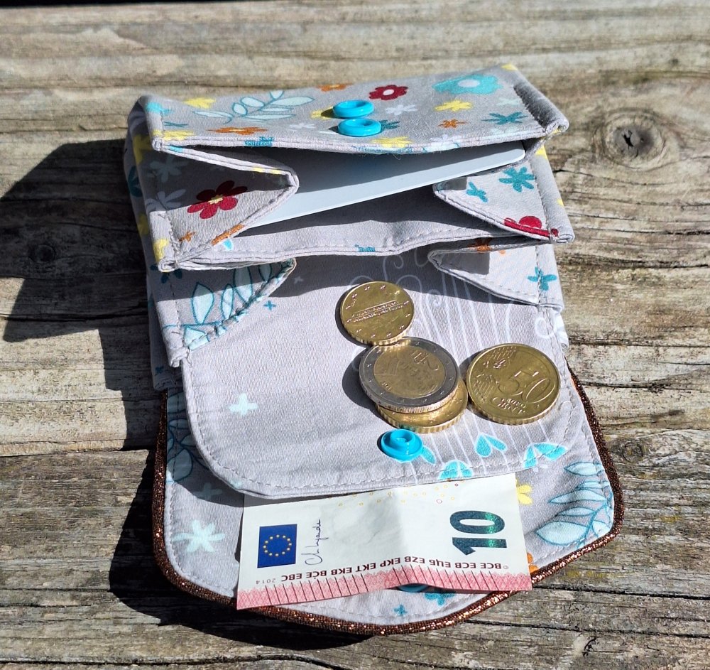 Un petit porte-monnaie sympa, pratique et coloré qui tient facilement dans la main et se glisse aisément dans une poche. Il peut contenir plusieurs cartes , de la monnaie, des billets de banque et même un clé.