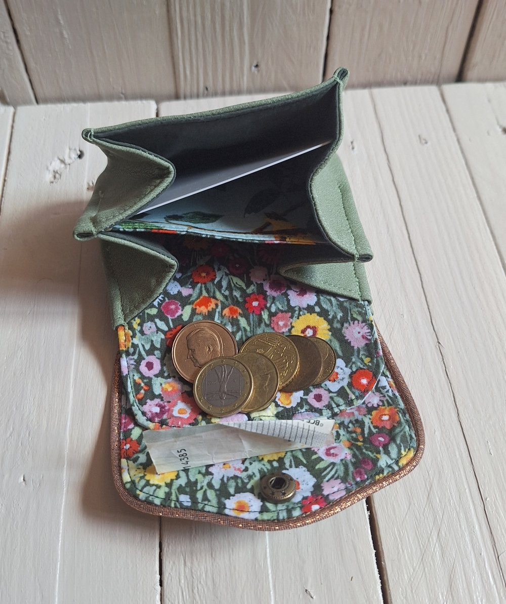 Un petit porte-monnaie sympa, pratique et coloré qui tient facilement dans la main et se glisse aisément dans une poche. Il peut contenir plusieurs cartes , de la monnaie, des billets de banque et même un clé.