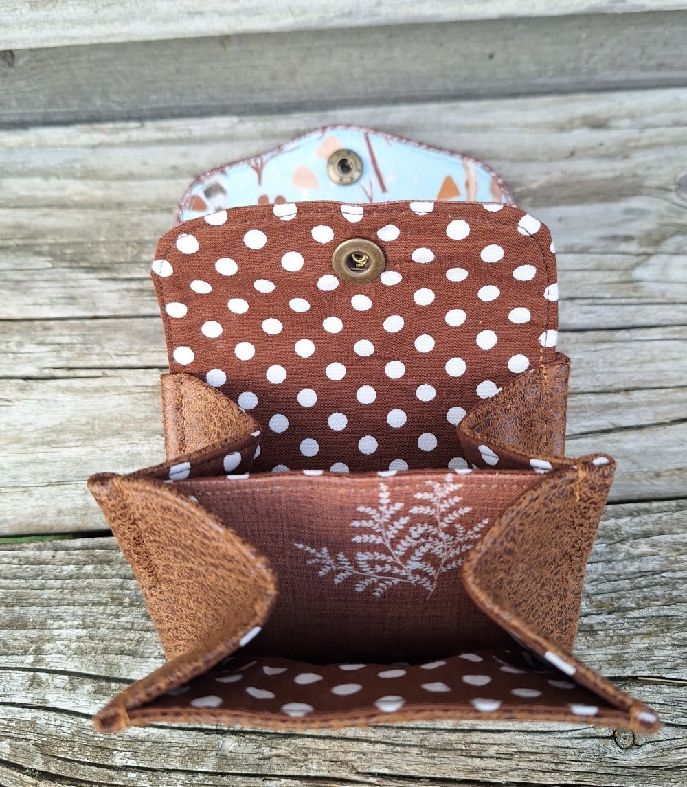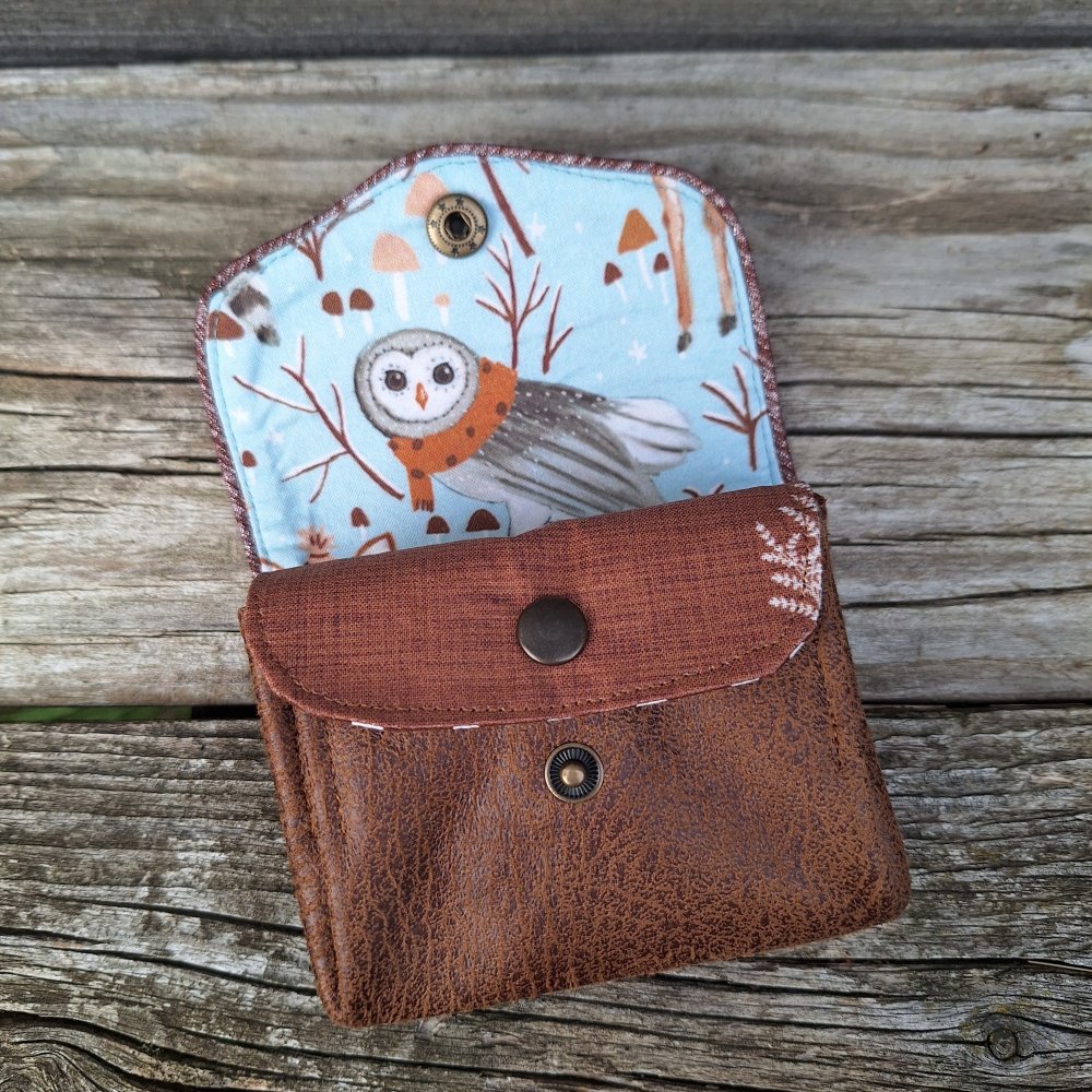 Un petit porte-monnaie sympa et pratique aux couleurs douces de la forêt et de la nature en hiver qui tient facilement dans la main et se glisse aisément dans une poche. Il peut contenir plusieurs cartes , de la monnaie, des billets de banque et même un clé.